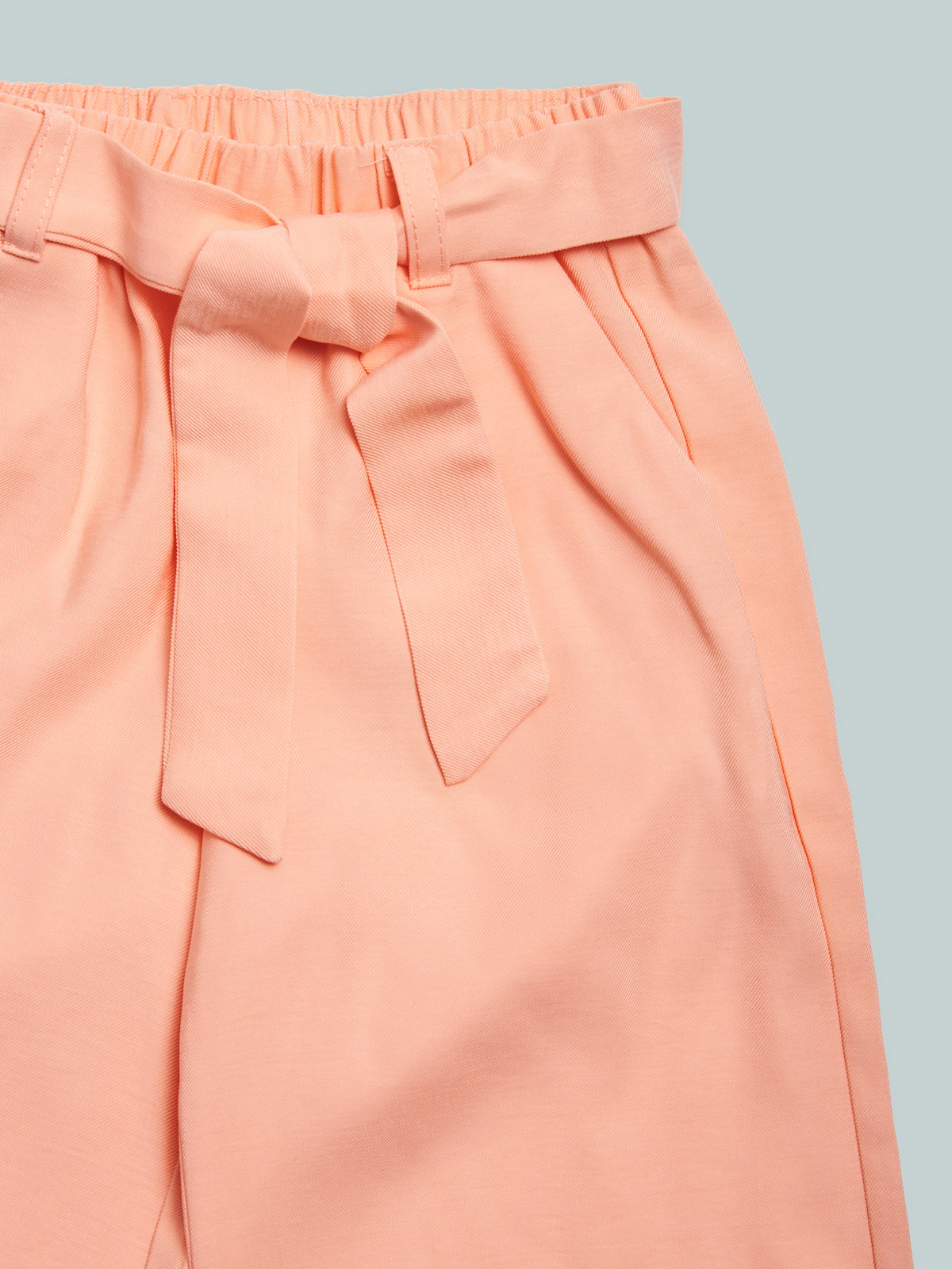 Pantaloni in tessuto viscosa con vita elasticata per maggiore comoditร . La fusciacca dona un tocco di femminilitร . Un capo elegante e sfizioso, ideale da indossare nelle occasioni piรน speciali.