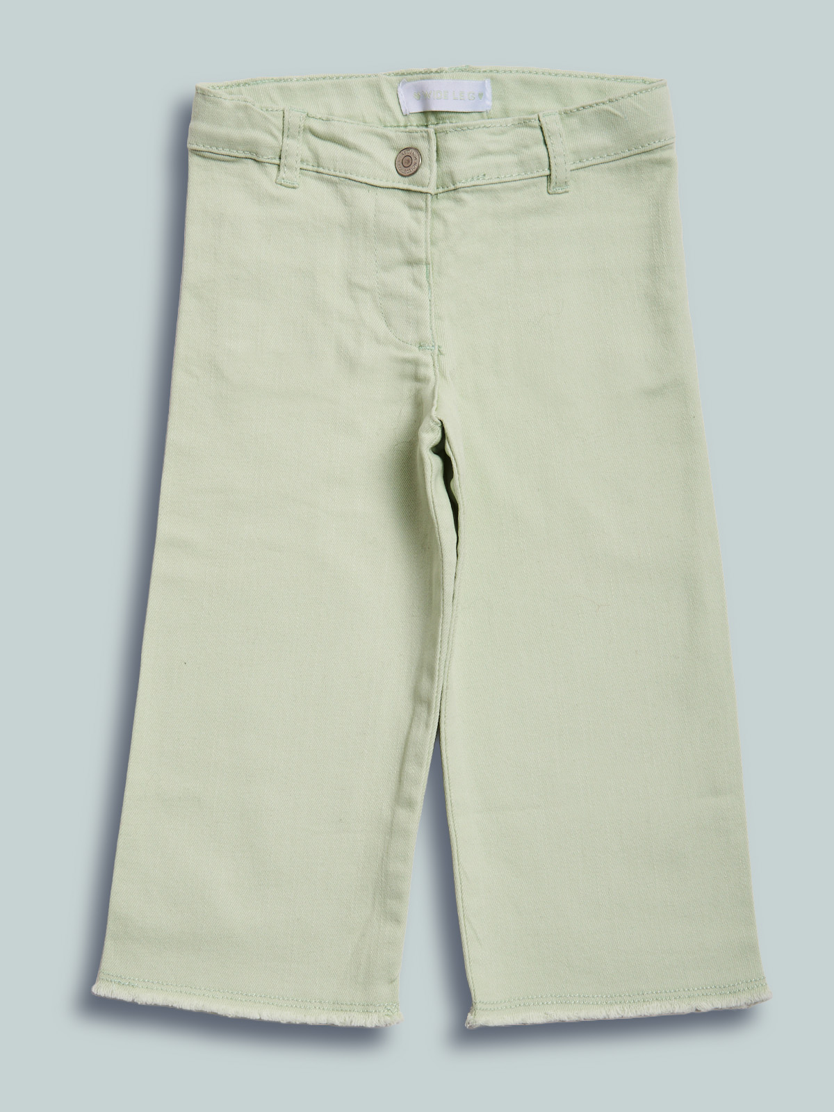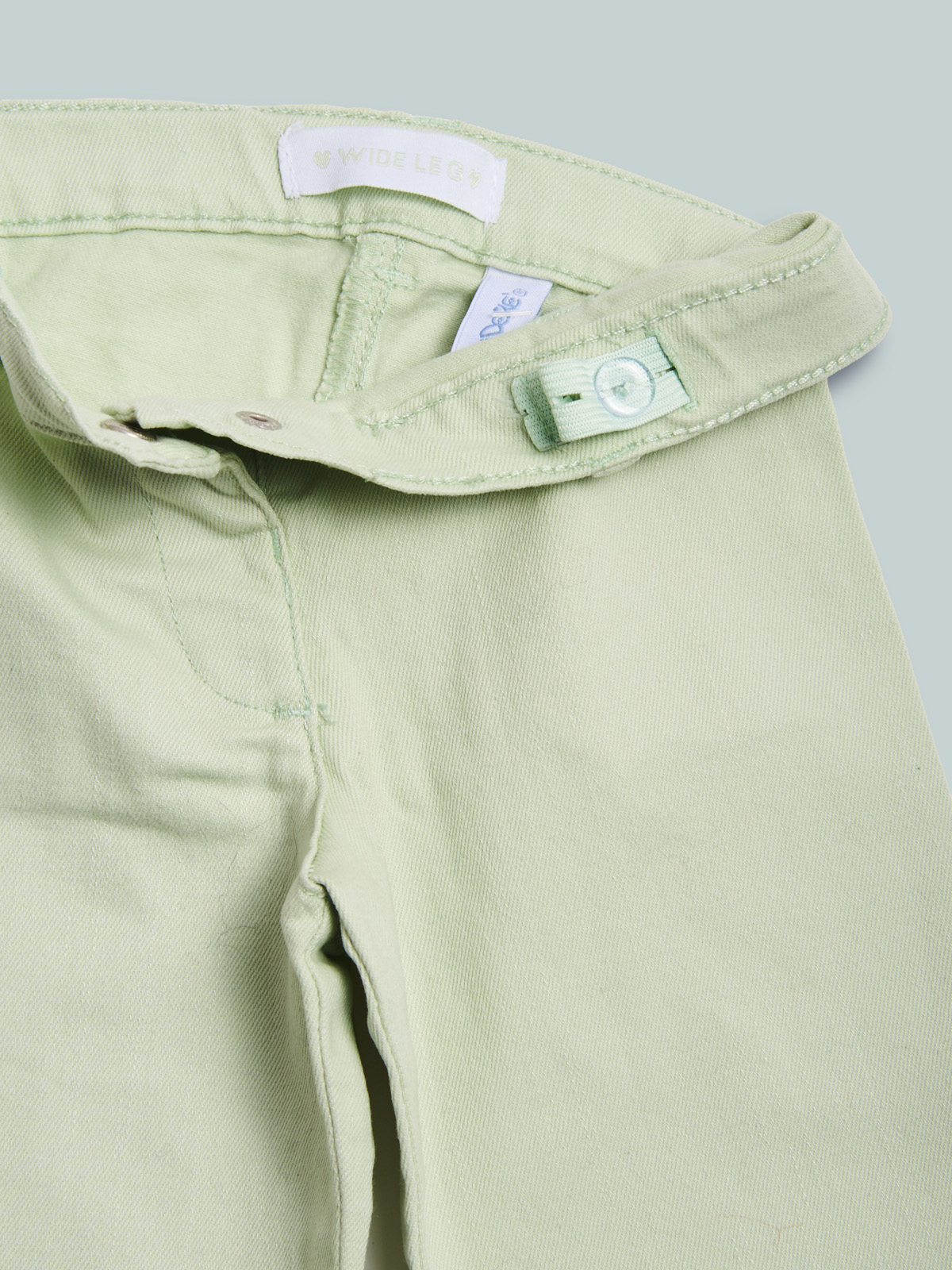 Pantaloni in morbido drill colorato. Vita regolabile e apertura tramite bottone per maggiore comoditร . Vestibilitร wide leg. Un capo comodo e al passo con la moda.