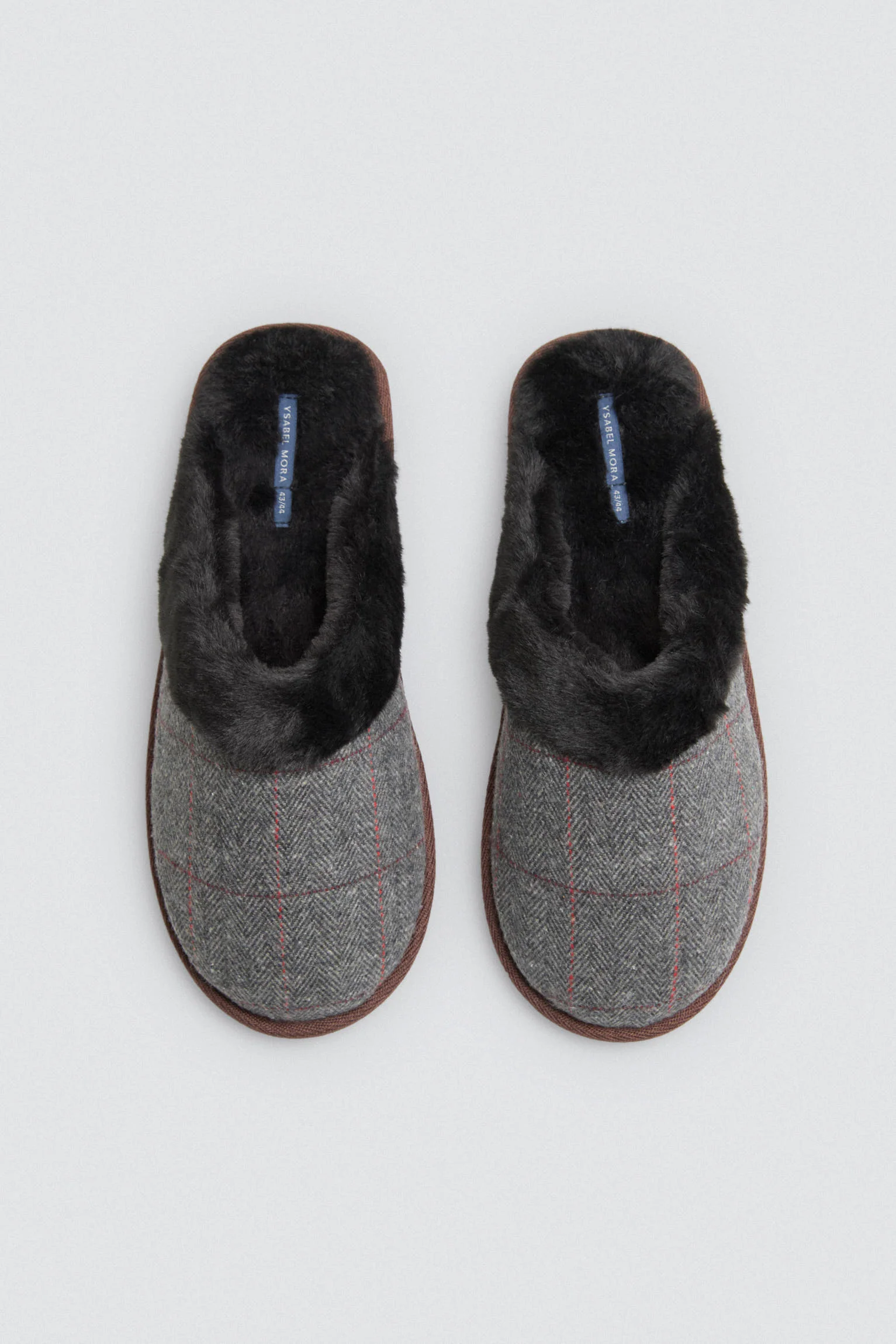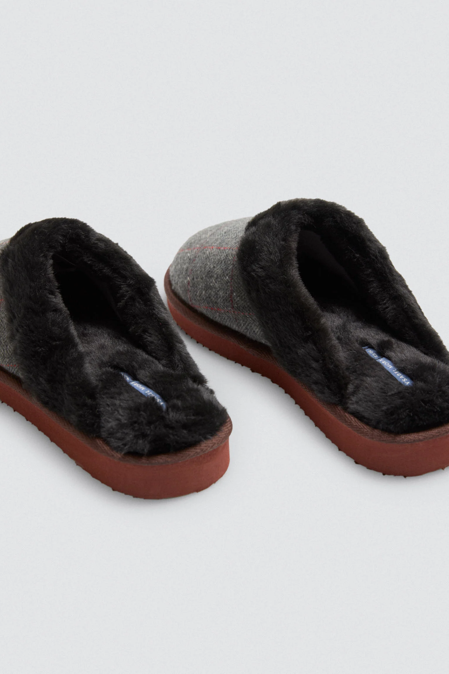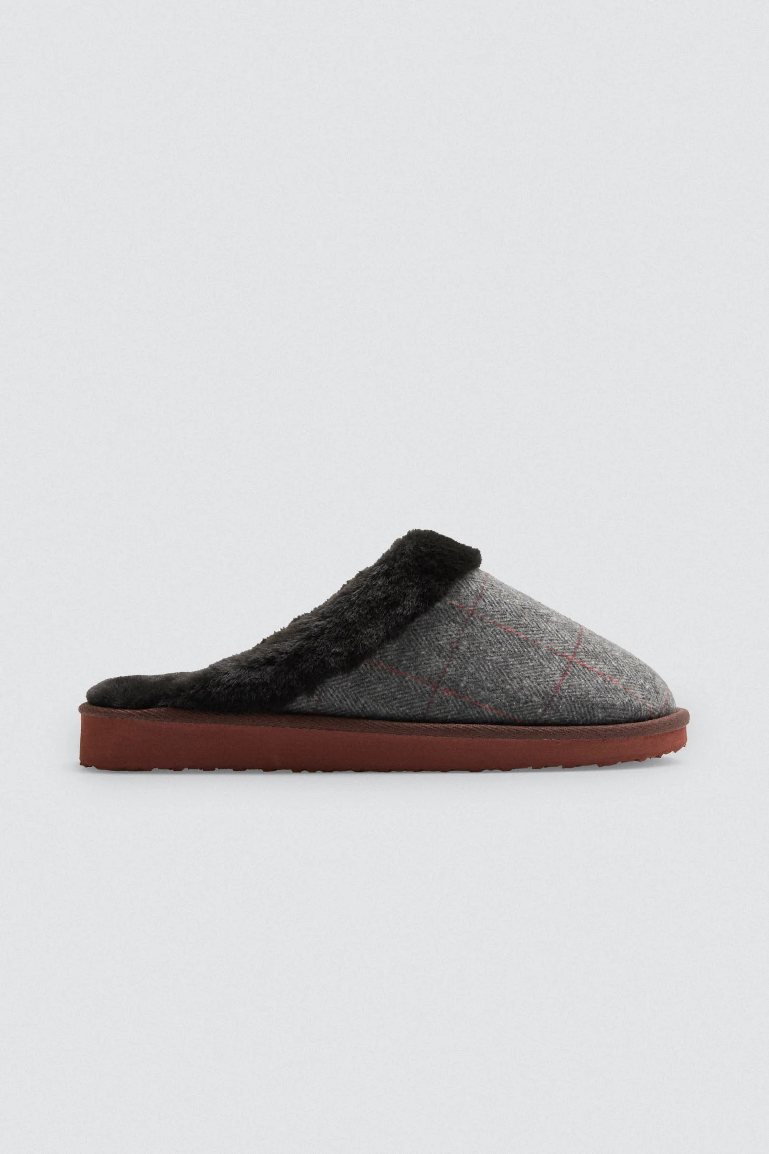 Pantofole a quadri con pelliccia