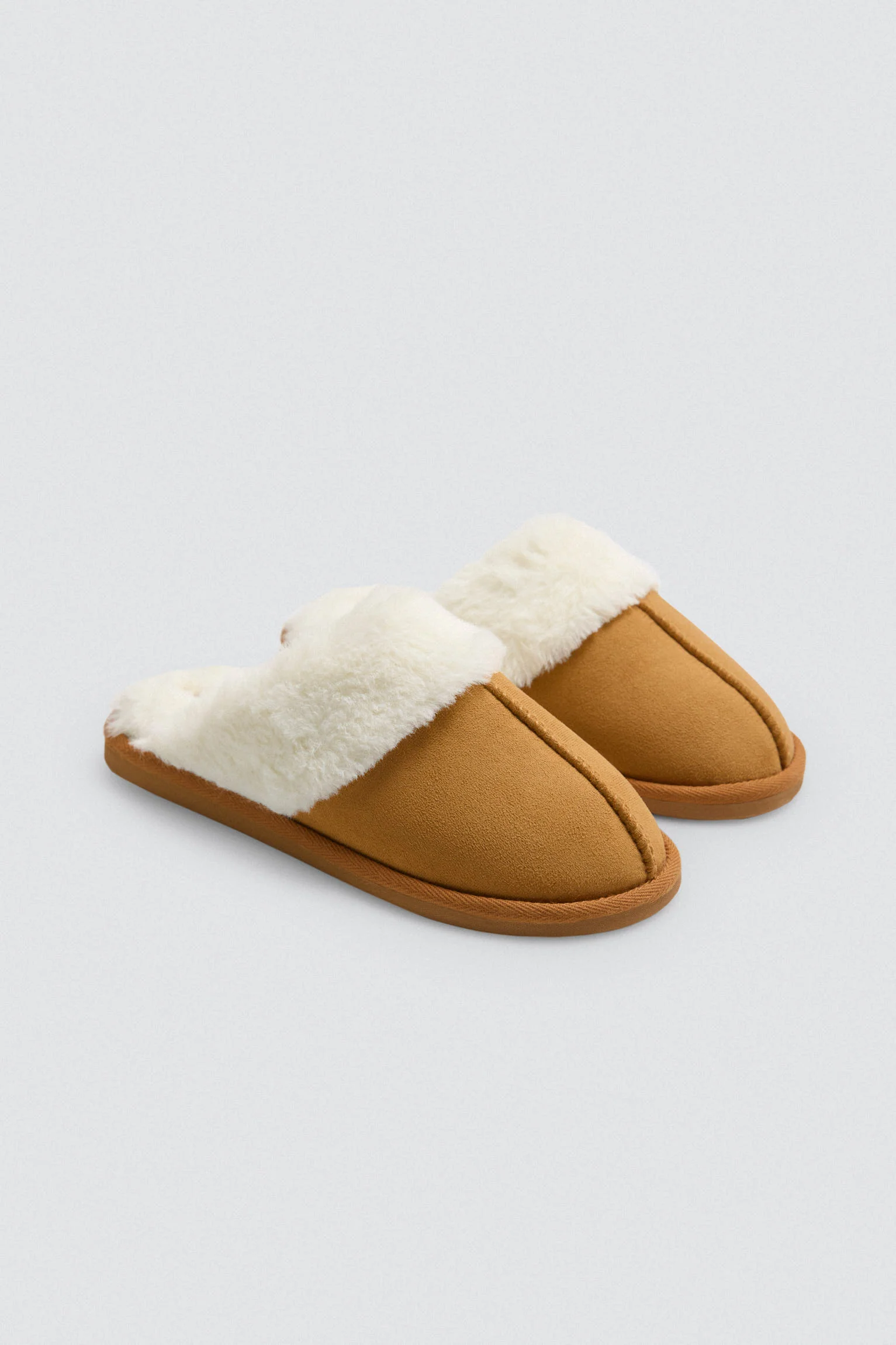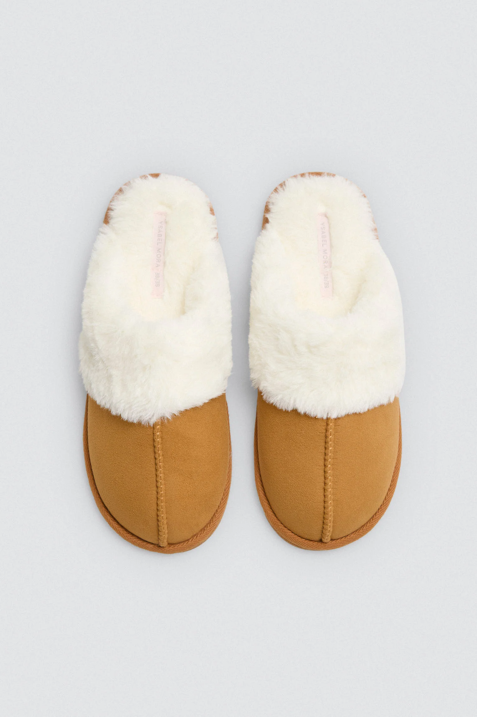 Pantofole dal design comodo e caldo, perfette per tenere i piedi al caldo nelle giornate fredde. Realizzate con un esterno in morbido effetto scamosciato e una fodera interna in pelliccia, offrono una sensazione di comfort e morbidezza durante la camminata. Il bordo in pelliccia sulla tomaia aggiunge un tocco elegante e accogliente.