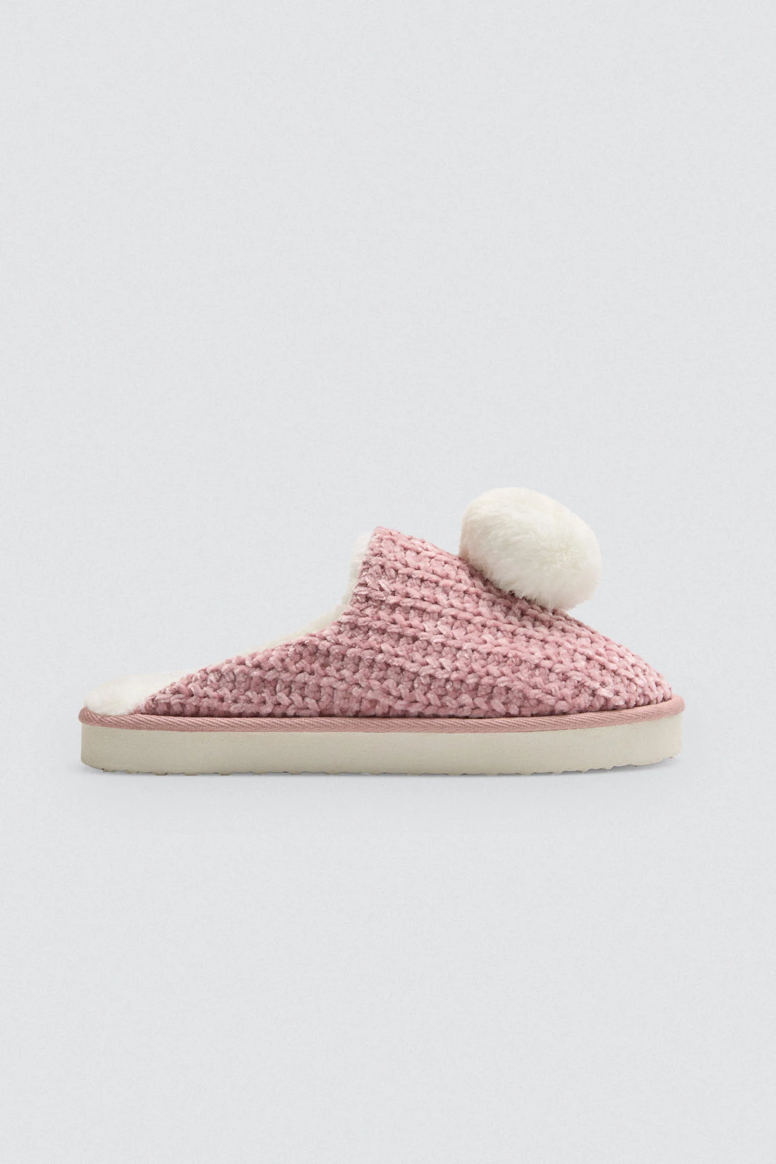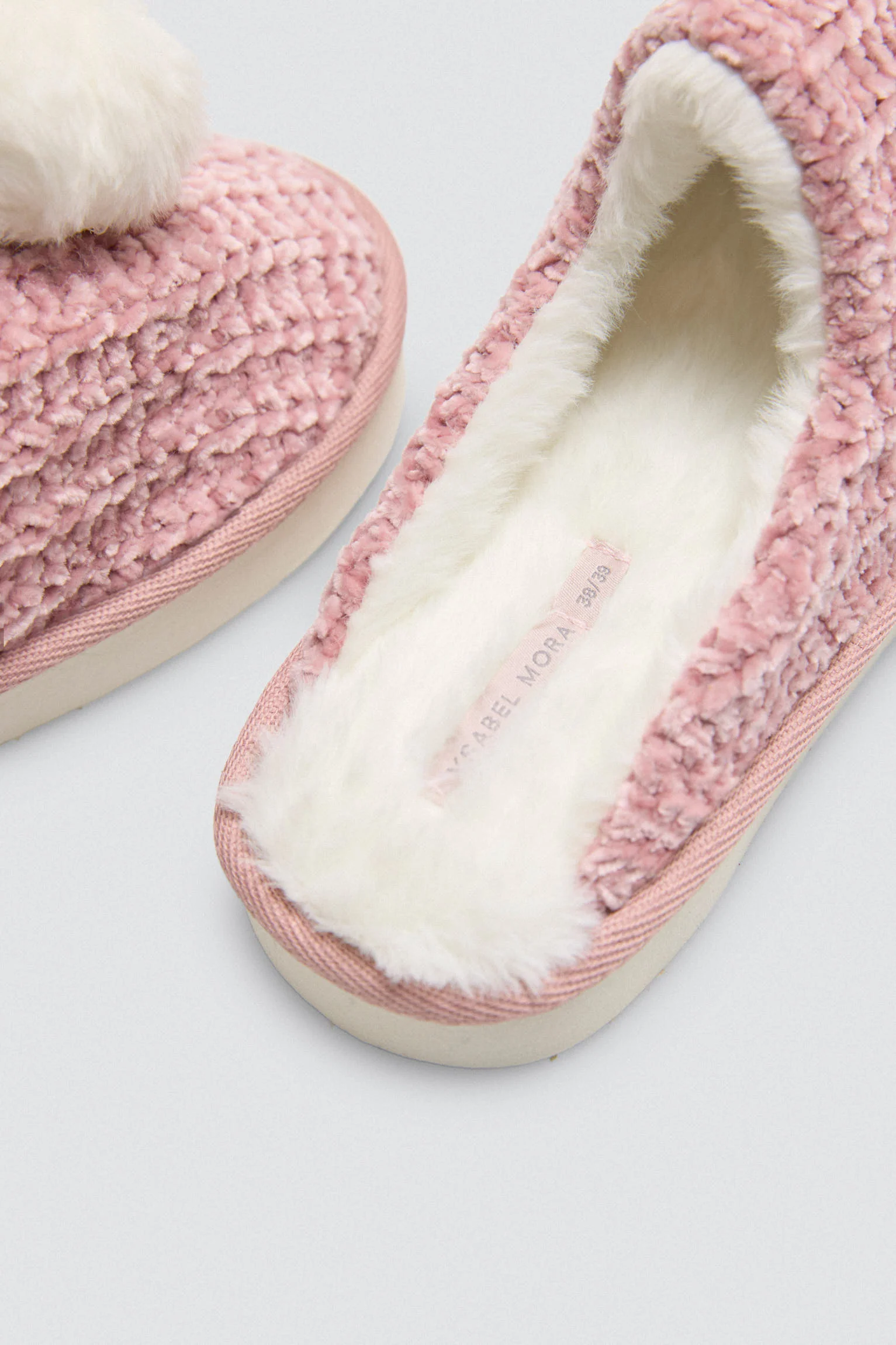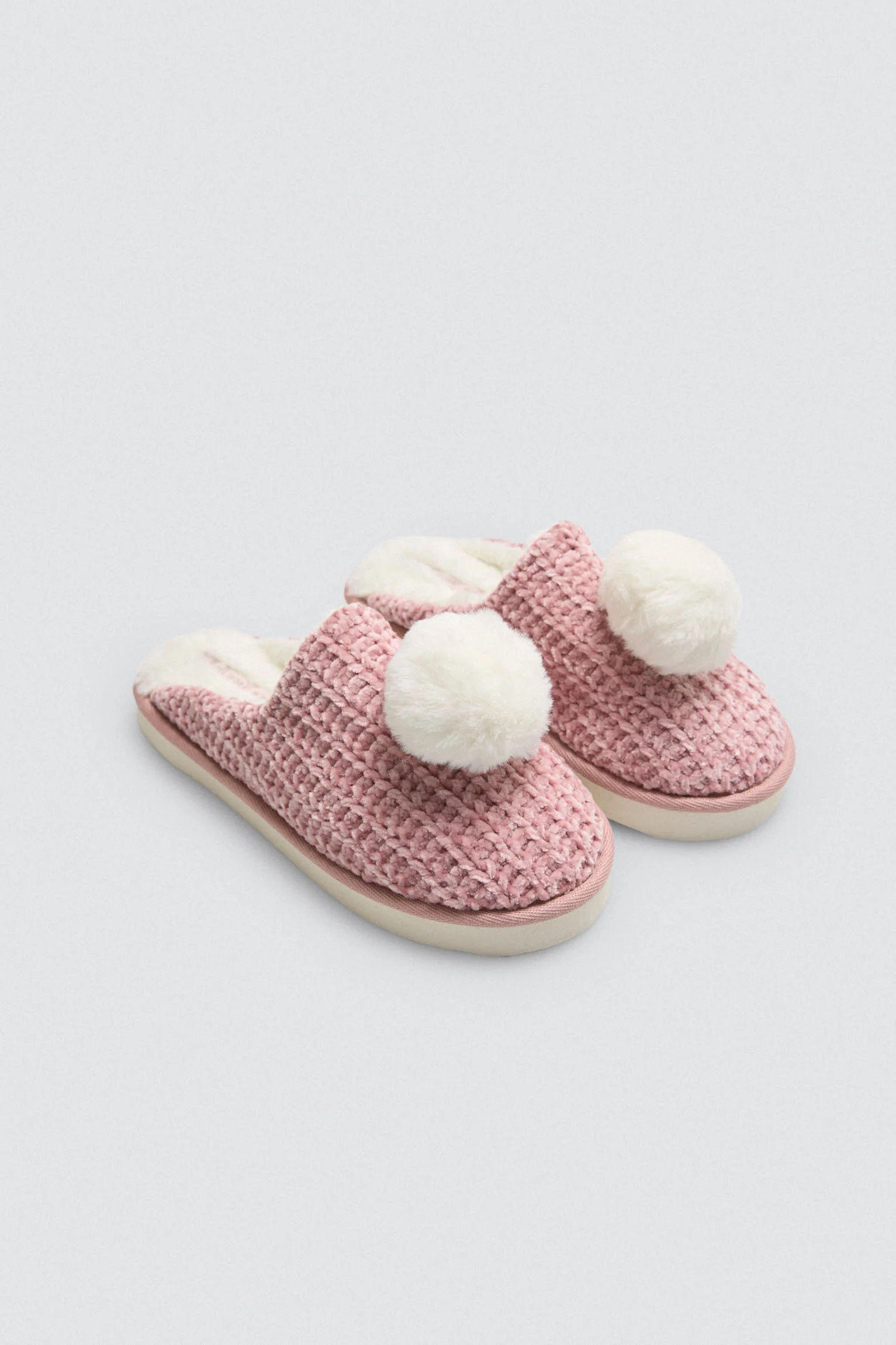 Pantofole vellutate con dettaglio pompon