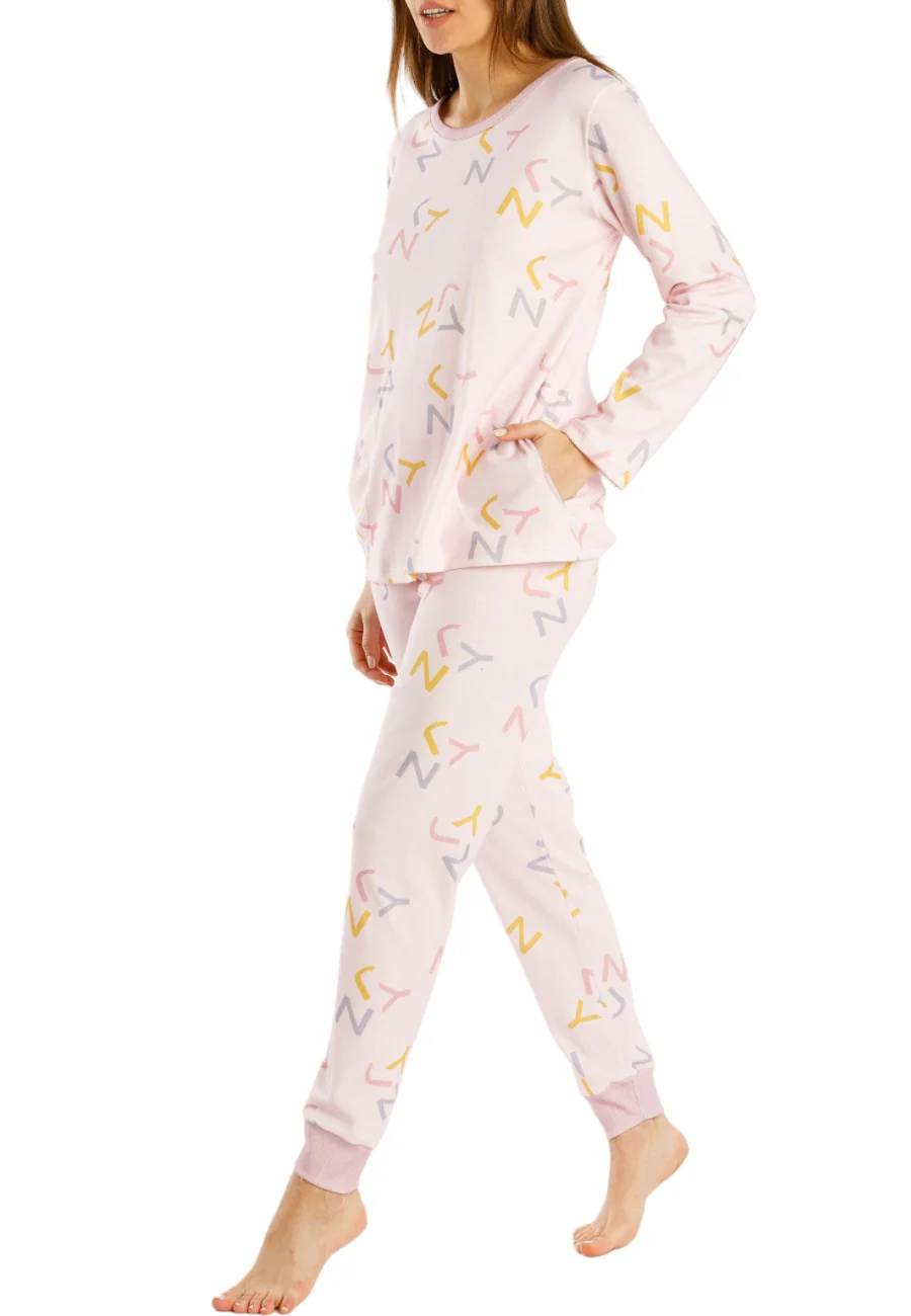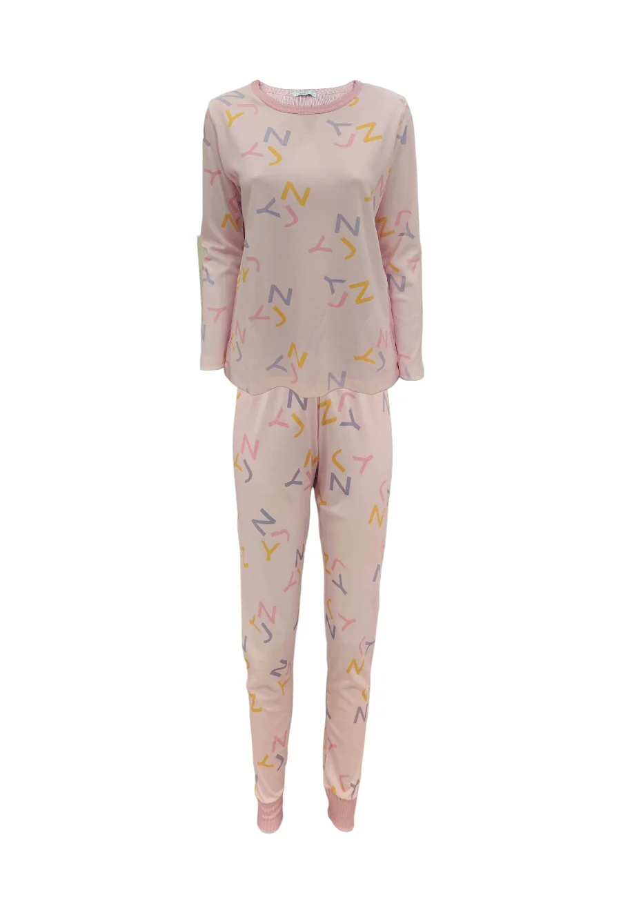 pigiama caldo cotone composto da maglia e pantalone fantasia lettere su fondo rosa