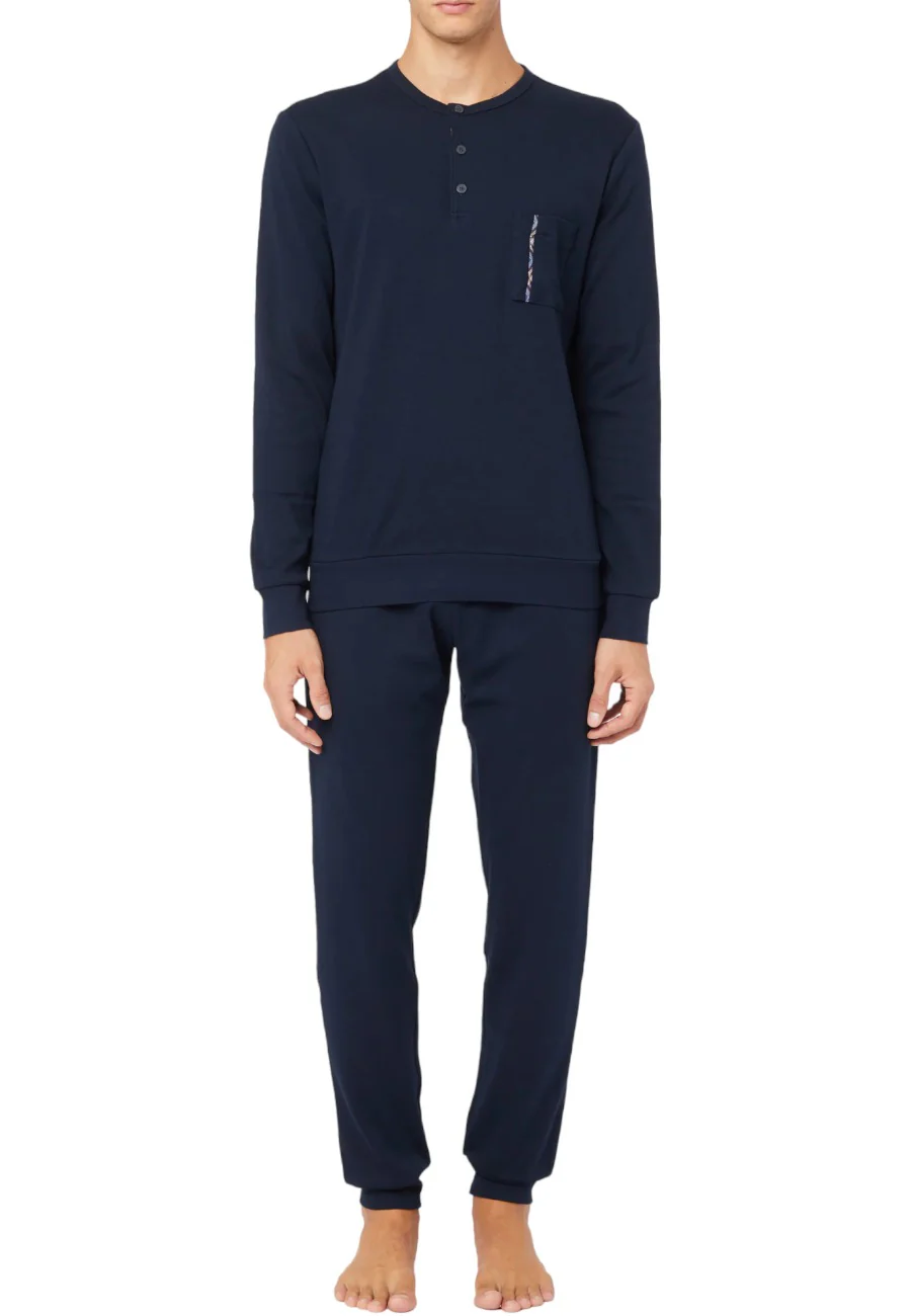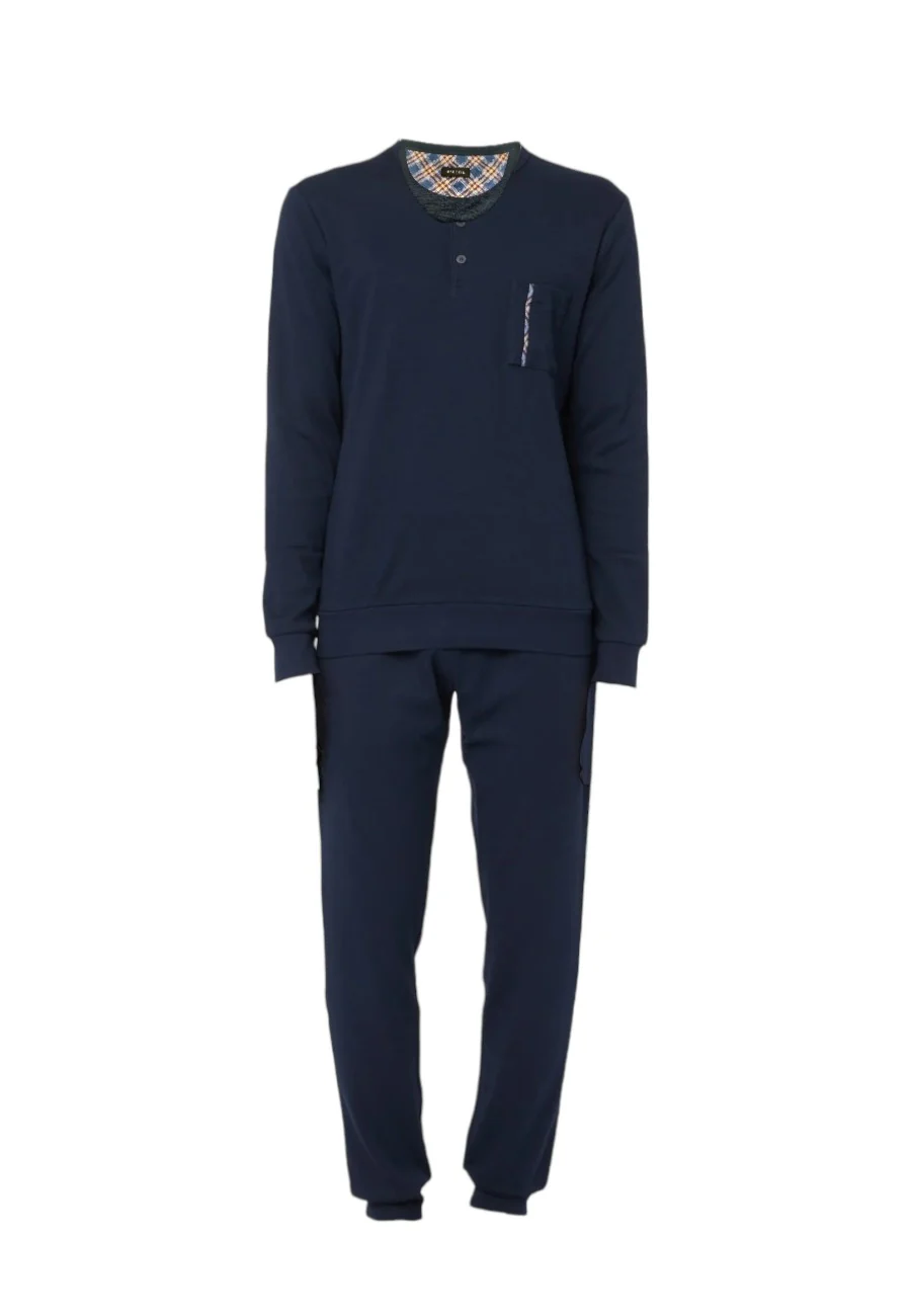 pigiama serafino con polsi in caldo cotone con fantasia check all’interno e sul taschino100% cotone