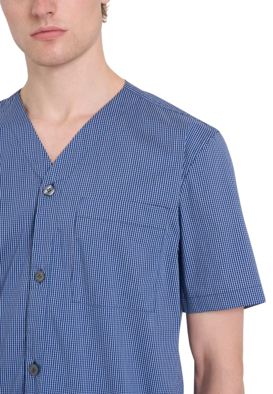 Pigiama corto in navetta di puro cotone tinto filo con camicia senza collo aperta con bottoni e tre tasche. I pantaloncini con taglio classico si adattano perfettamente alle calde temperature e donando una sensazione di freschezza e comfort eccezionale. Il tessuto in navetta di cotone รจ scelto per la sua morbidezza e comfort sulla pelle, […]