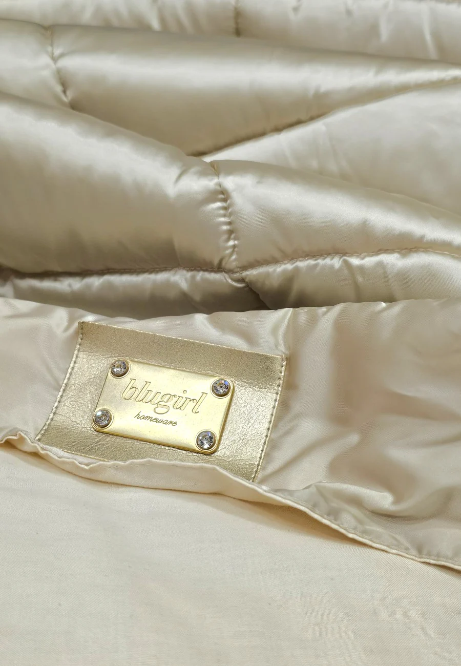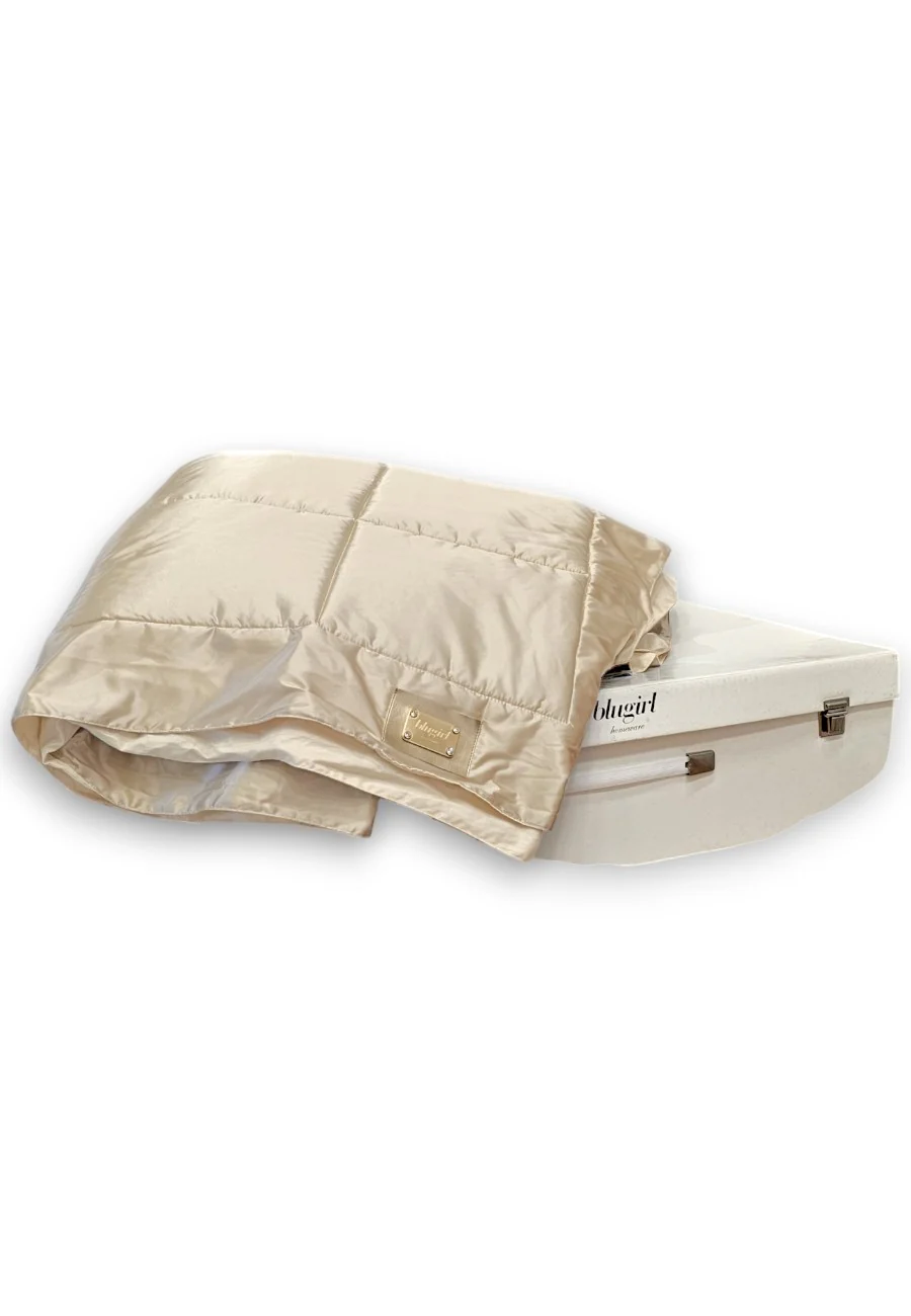 Piumotto Blugirl by Blumarine in raso trapuntato color champagne e innovativa imbottitura Teconofibra che offre traspirabilitร , comfort e qualitร . Cura nei dettagli e controllo qualitร verificato Svad Dondi. Il capo รจ ideale come plaid per ogni ambiente della casa.