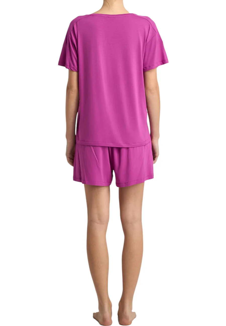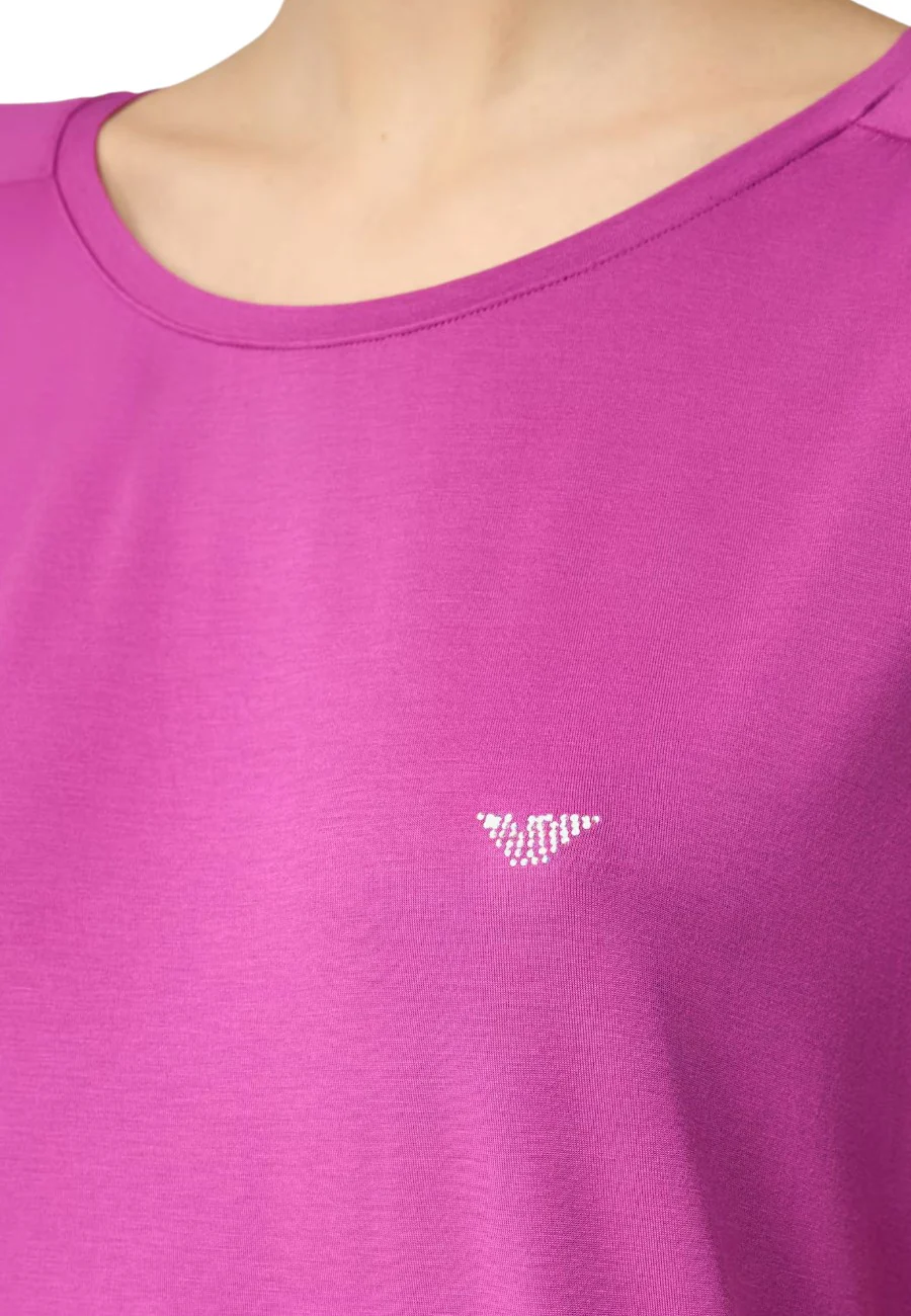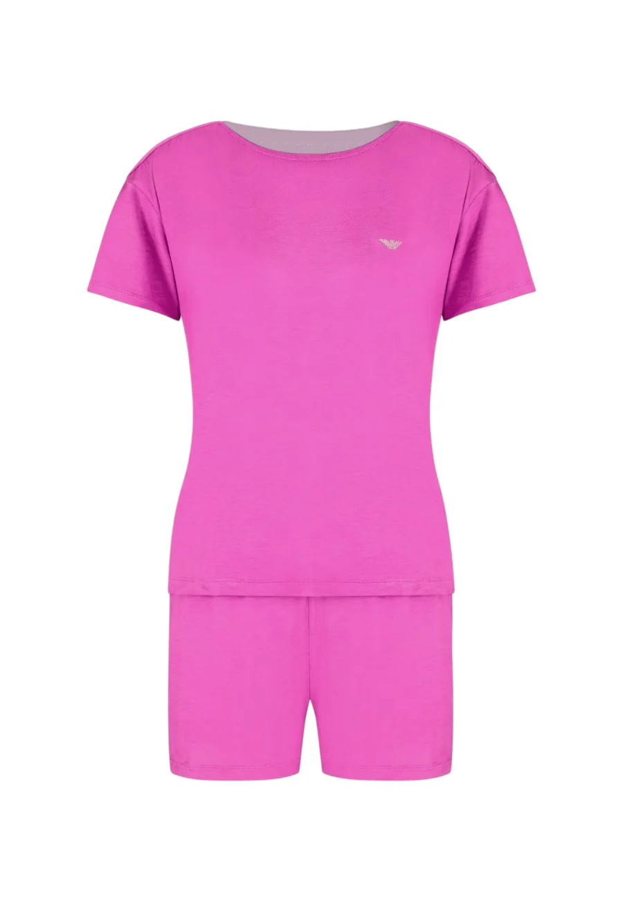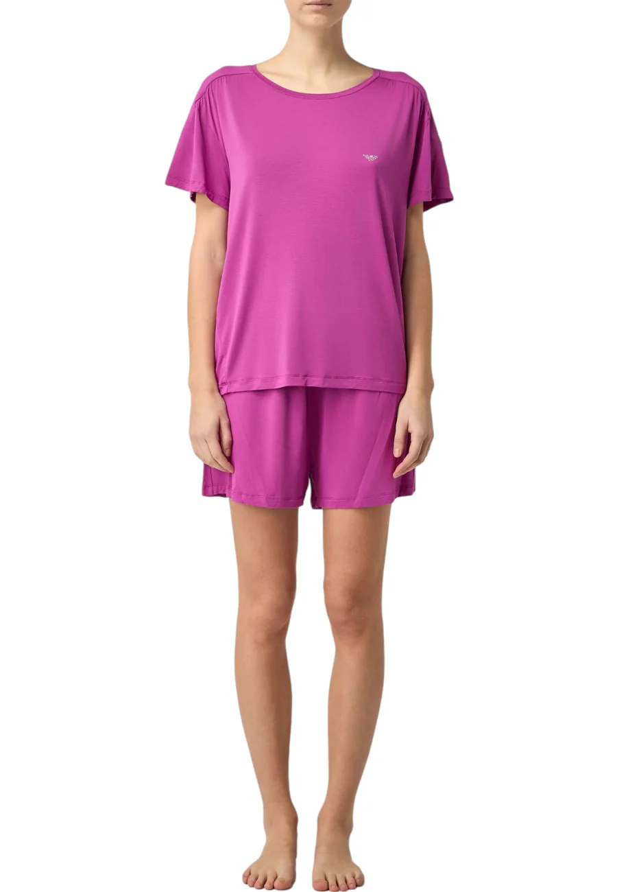 Pigiama composto da T-shirt con arricciatura sulle maniche e logo aquila con studs e shorts a vita elastica, in tessuto di viscosa organica certificata realizzato con fibre naturali 95& viscosa 5% elastan