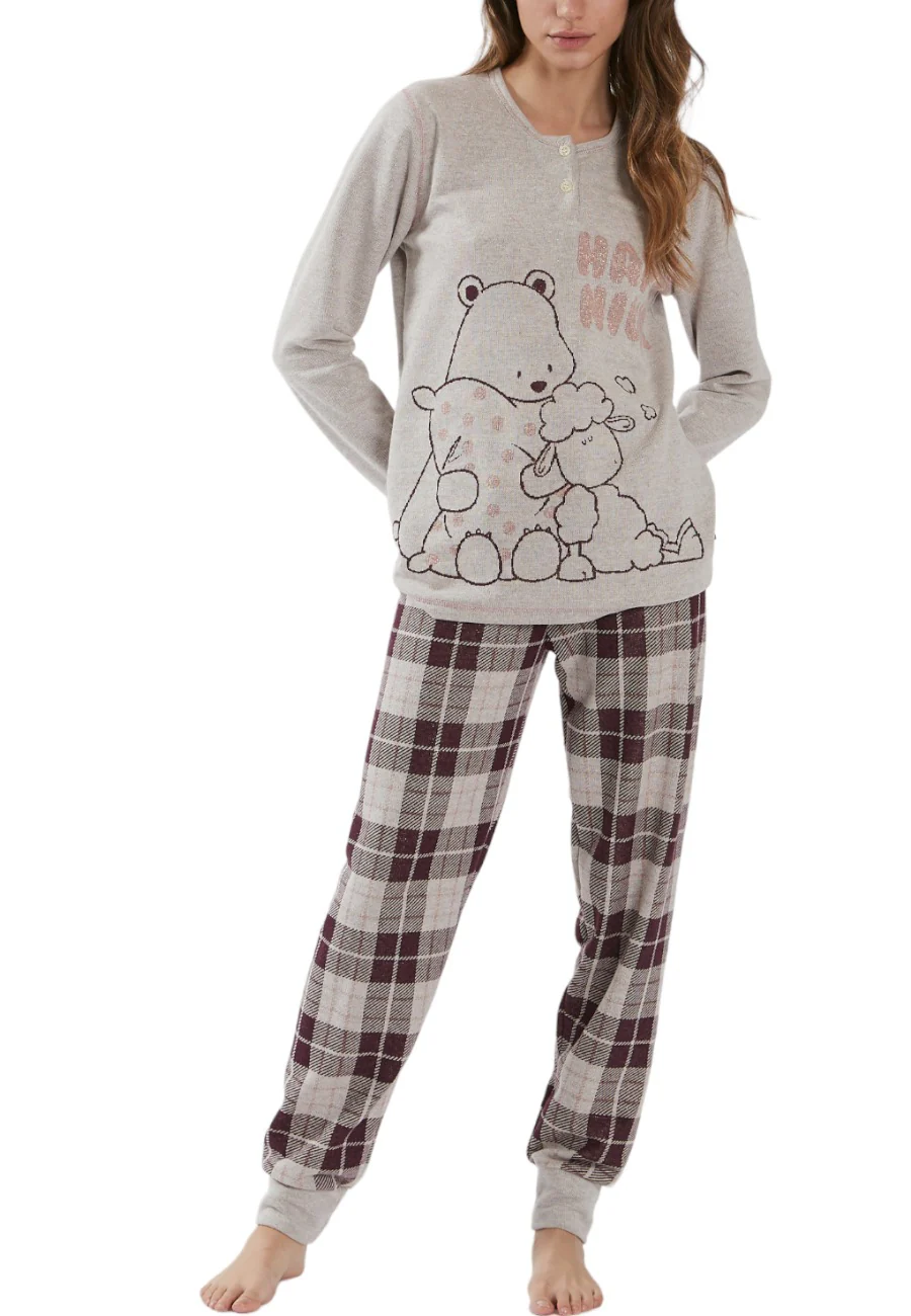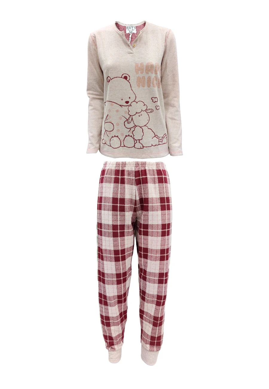 pigiama serafino in in punto milano con pantalone stampa tartan. 48% cotone 42%poliestere5%metal 5%poliammidica