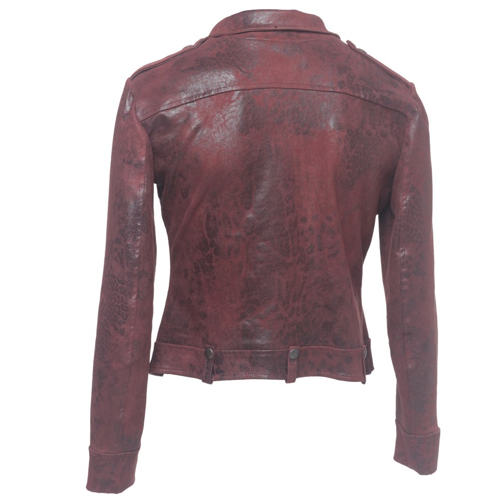 Giacca Biker Donna Bordeaux Effetto Scamosciato Please