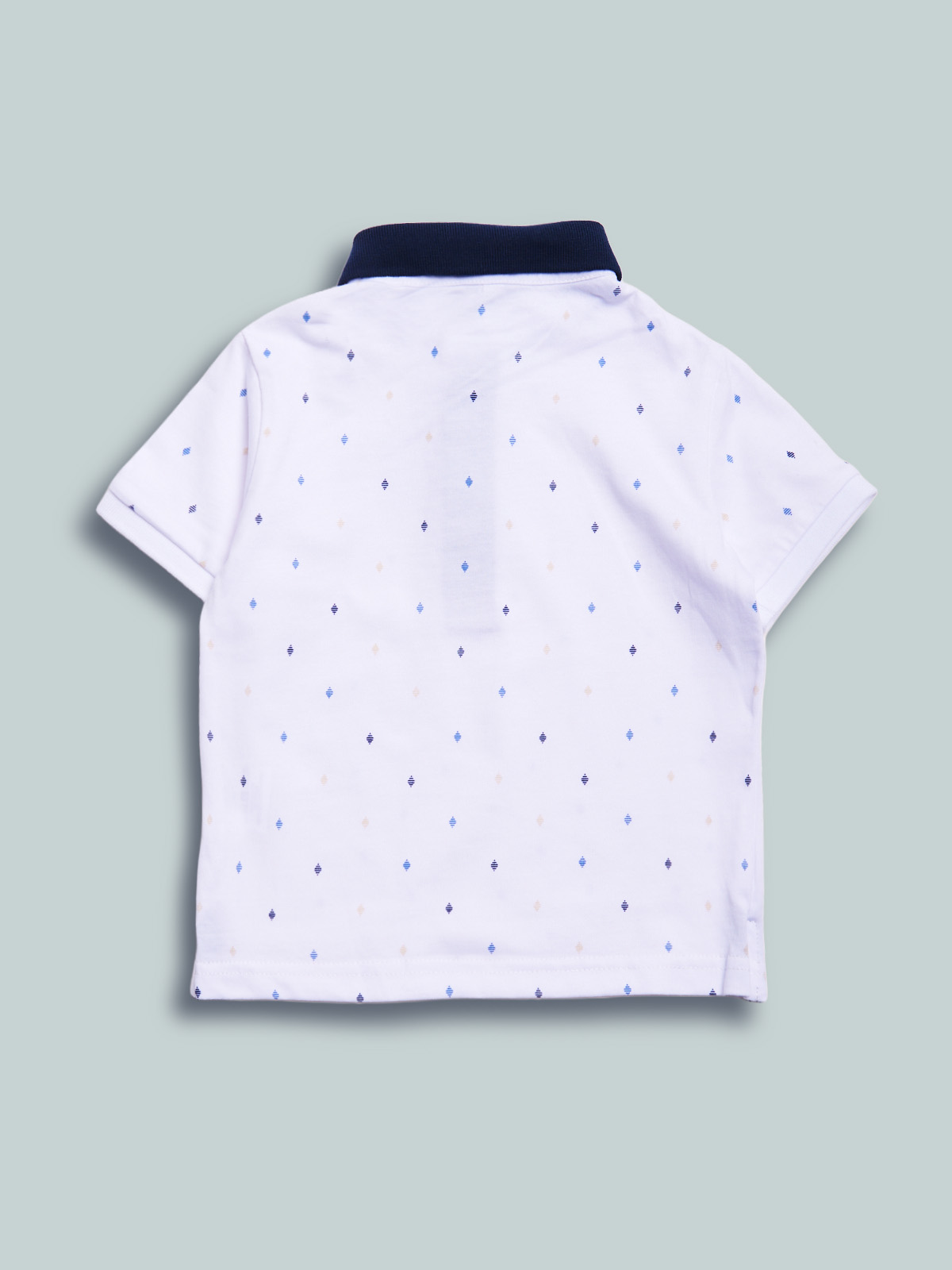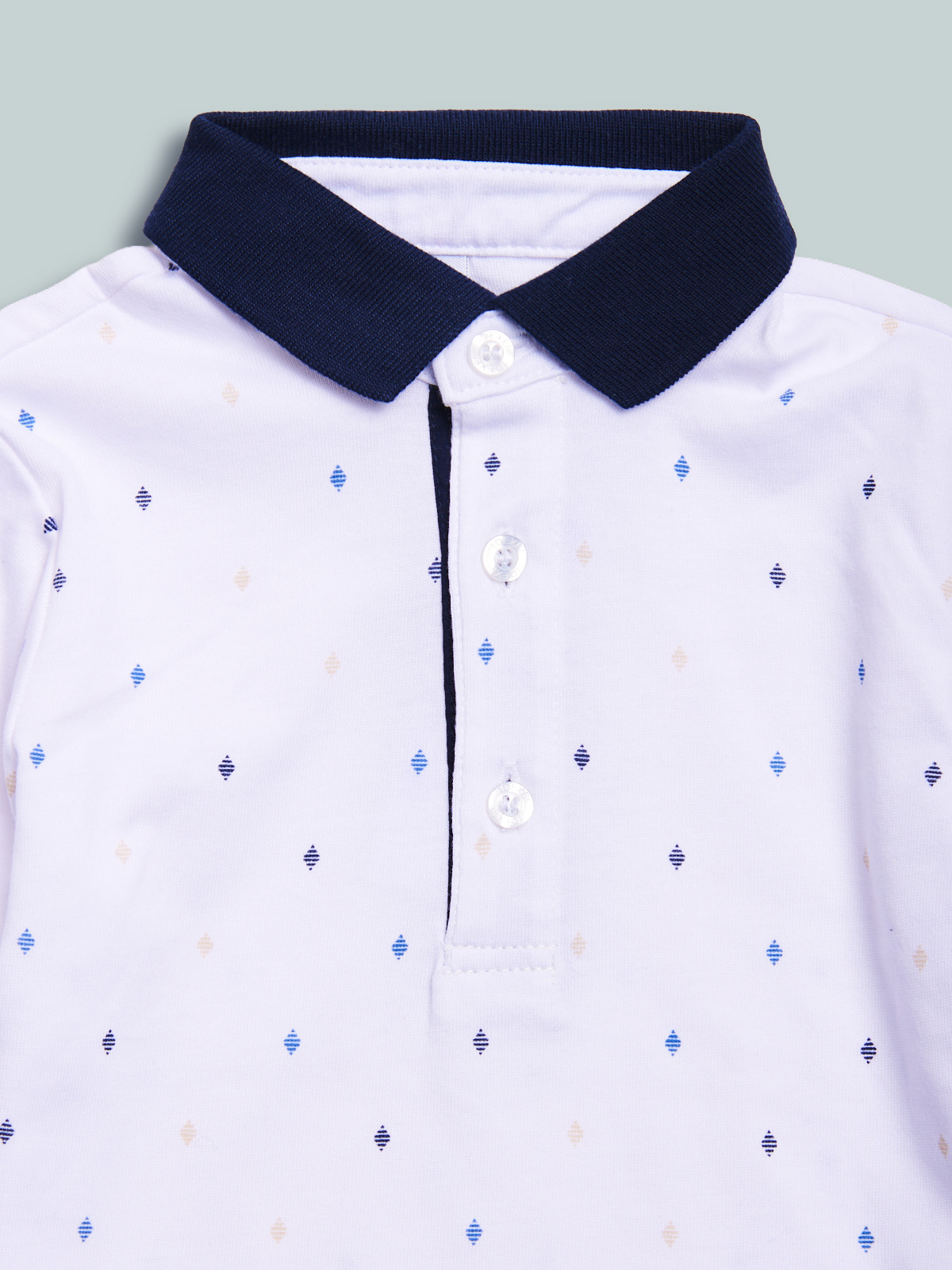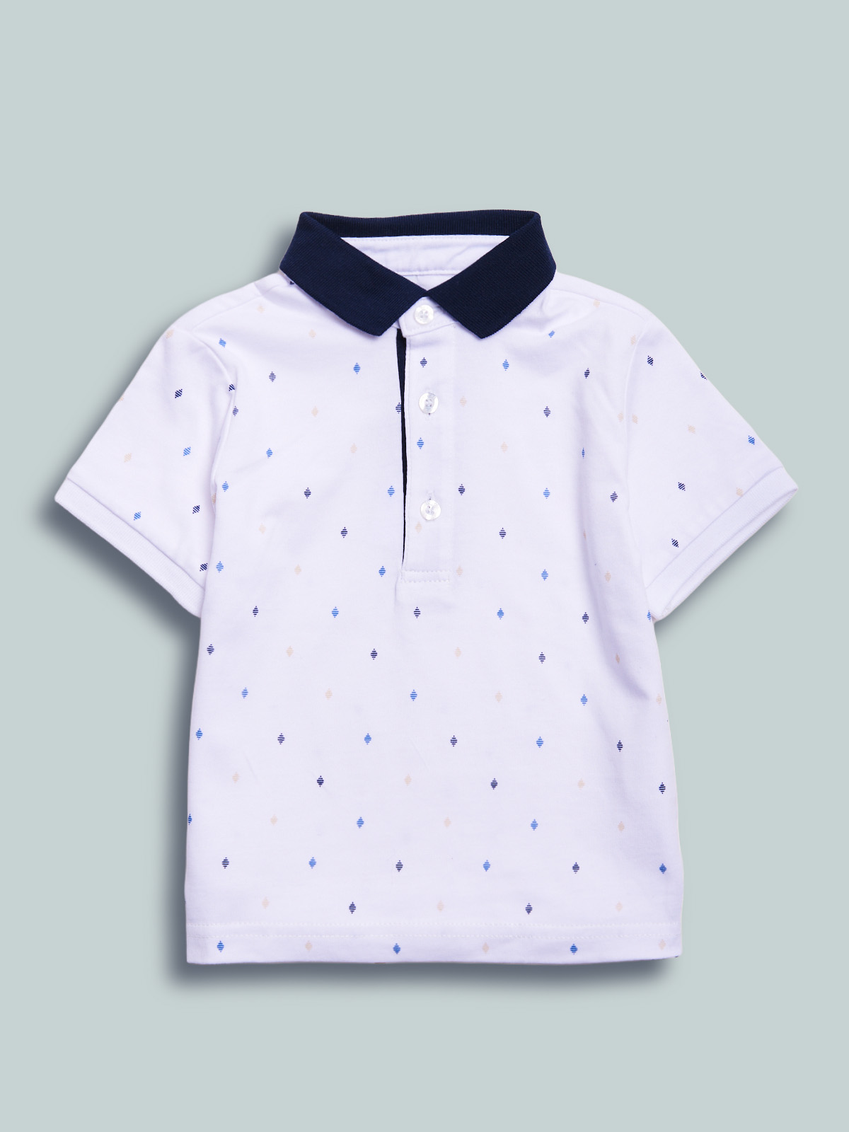 Polo manica corta in cotone microfantasia. Inserti in colore a contrasto, fondo maniche in costina. Mezza apertura davanti con bottoncini madreperla. Un capo dallo stile classico, ideale per le occasioni speciali.