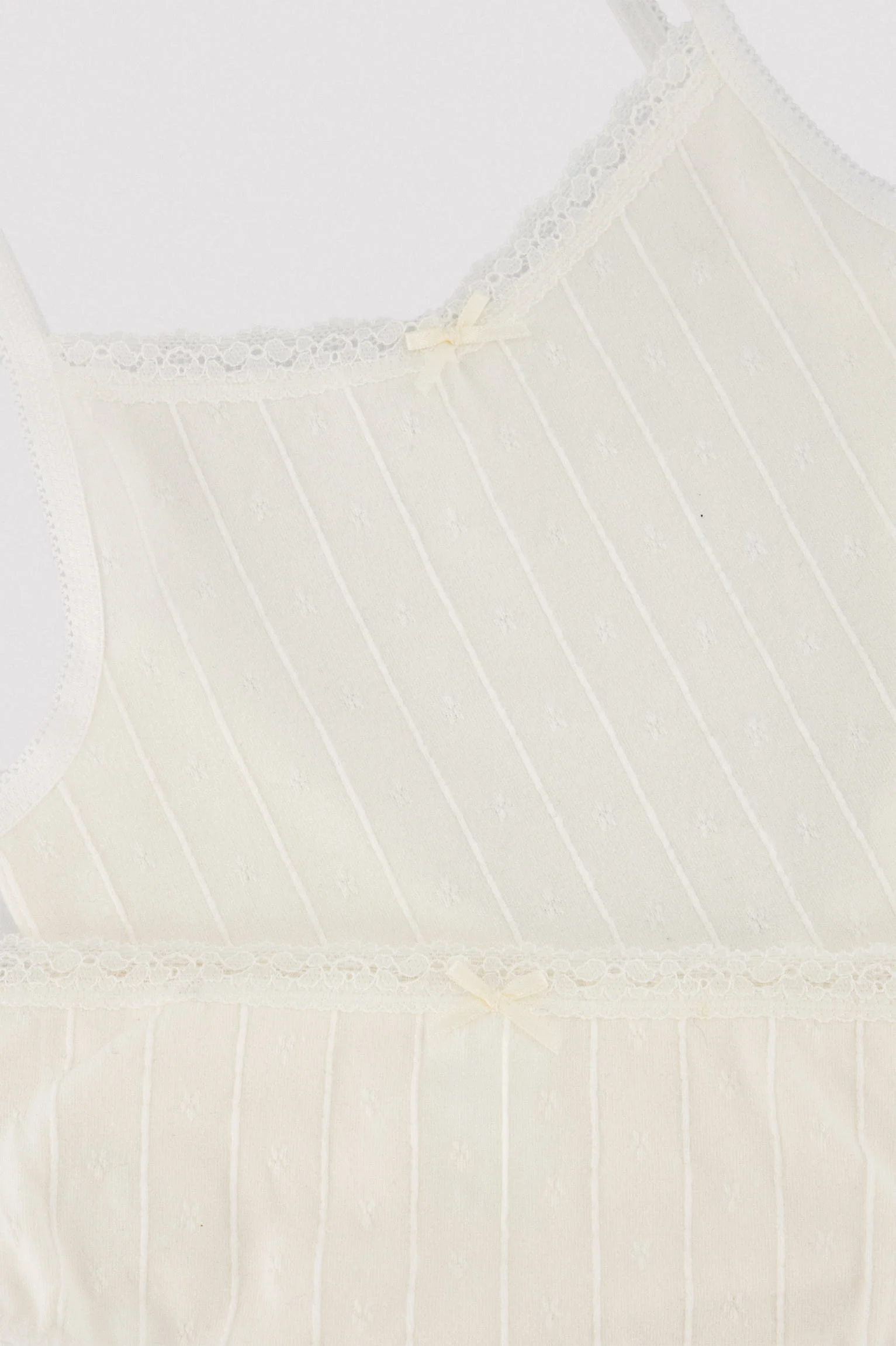 Questo articolo fa parte della nostra collezione in prevendita e la consegna avverrร a partire dal 6 marzo. Completo intimo da bambina realizzato in morbido cotone. La canotta con scollo a V e gli slip coordinati offrono una vestibilitร comoda e morbida, ideale per l’uso quotidiano o per eventi speciali.