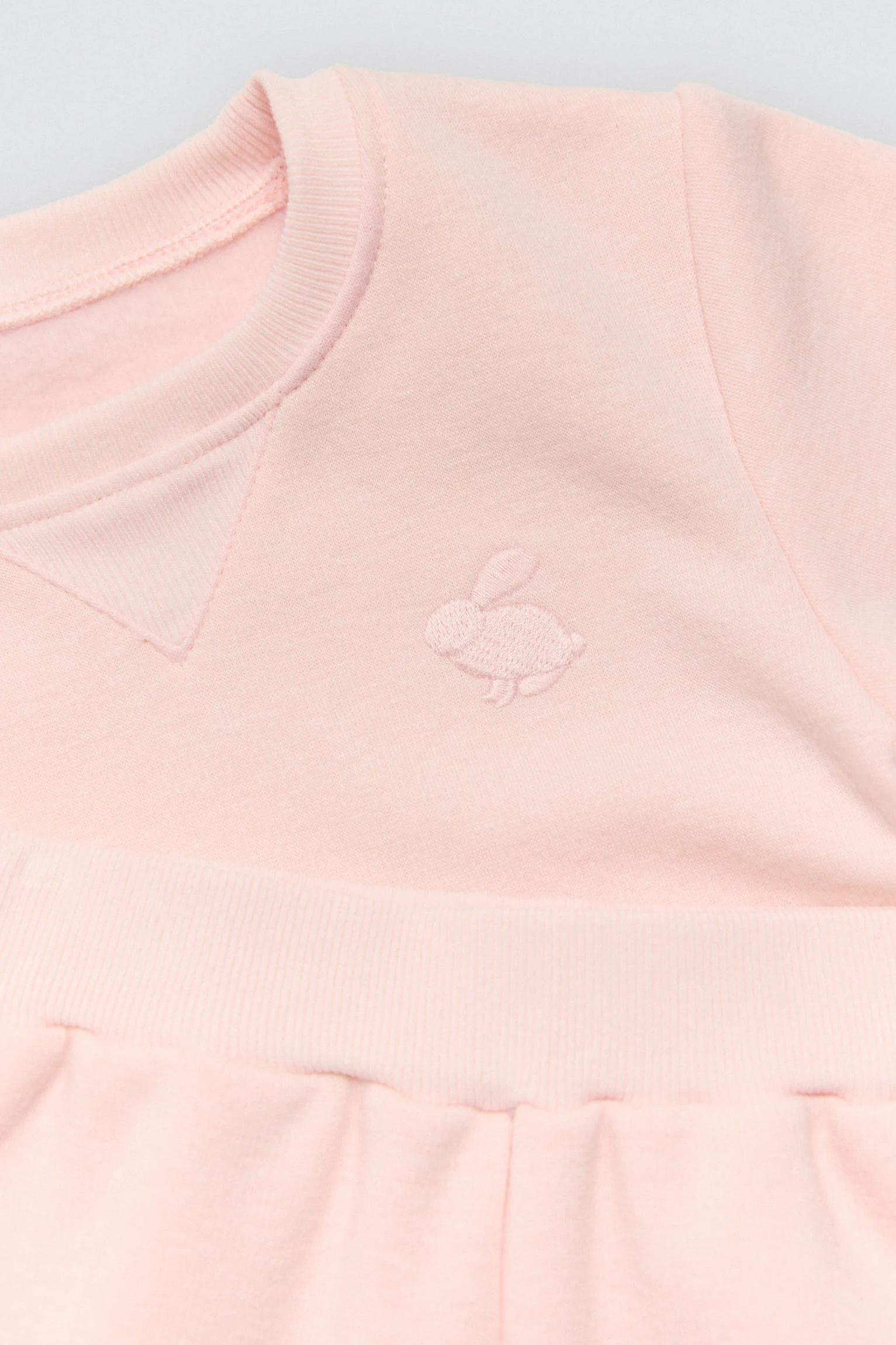 - Dettaglio ricamato a forma di coniglietto sul petto, discreto e grazioso.