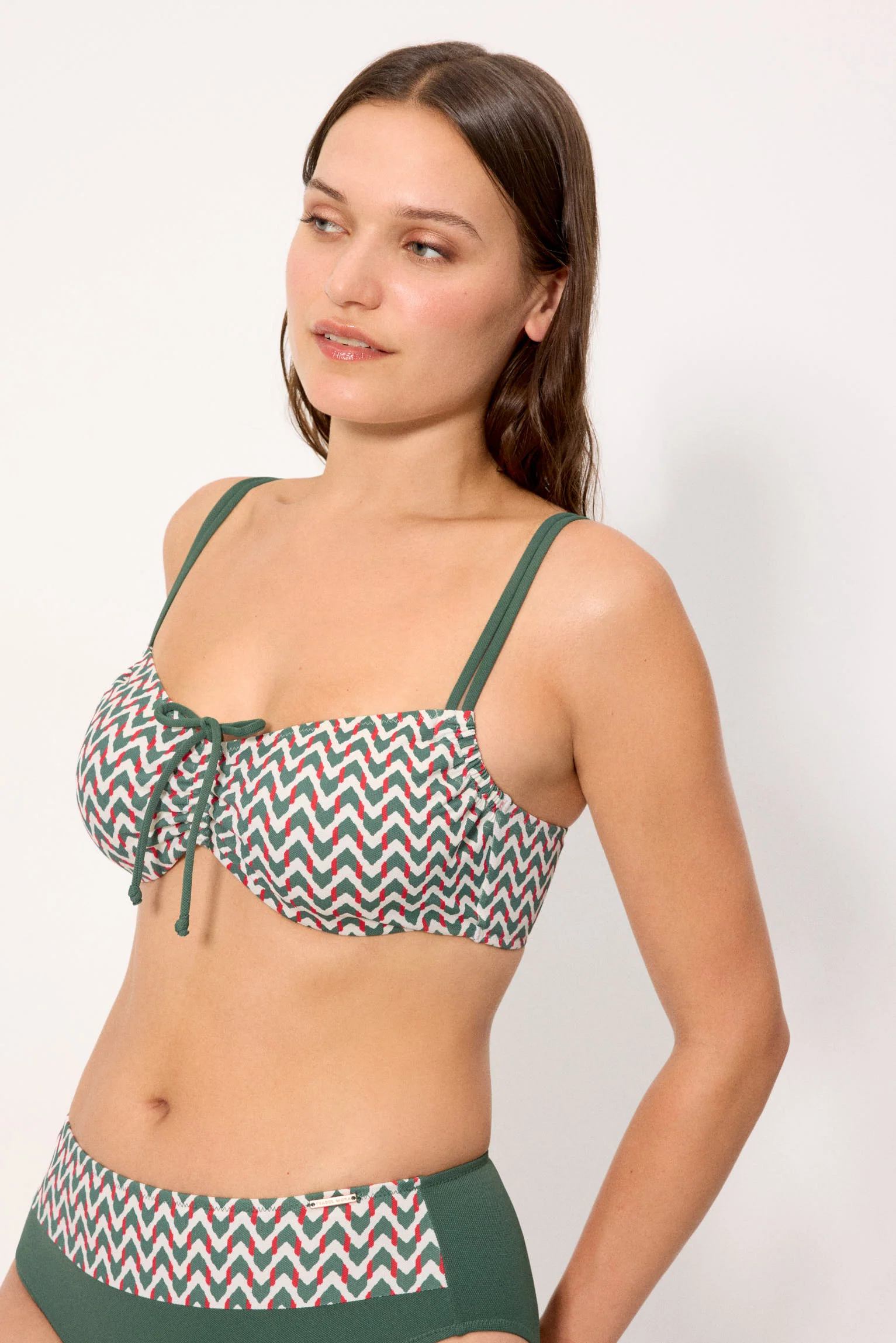 Reggiseno bikini a fascia con stampa geometrica verde, coppa B