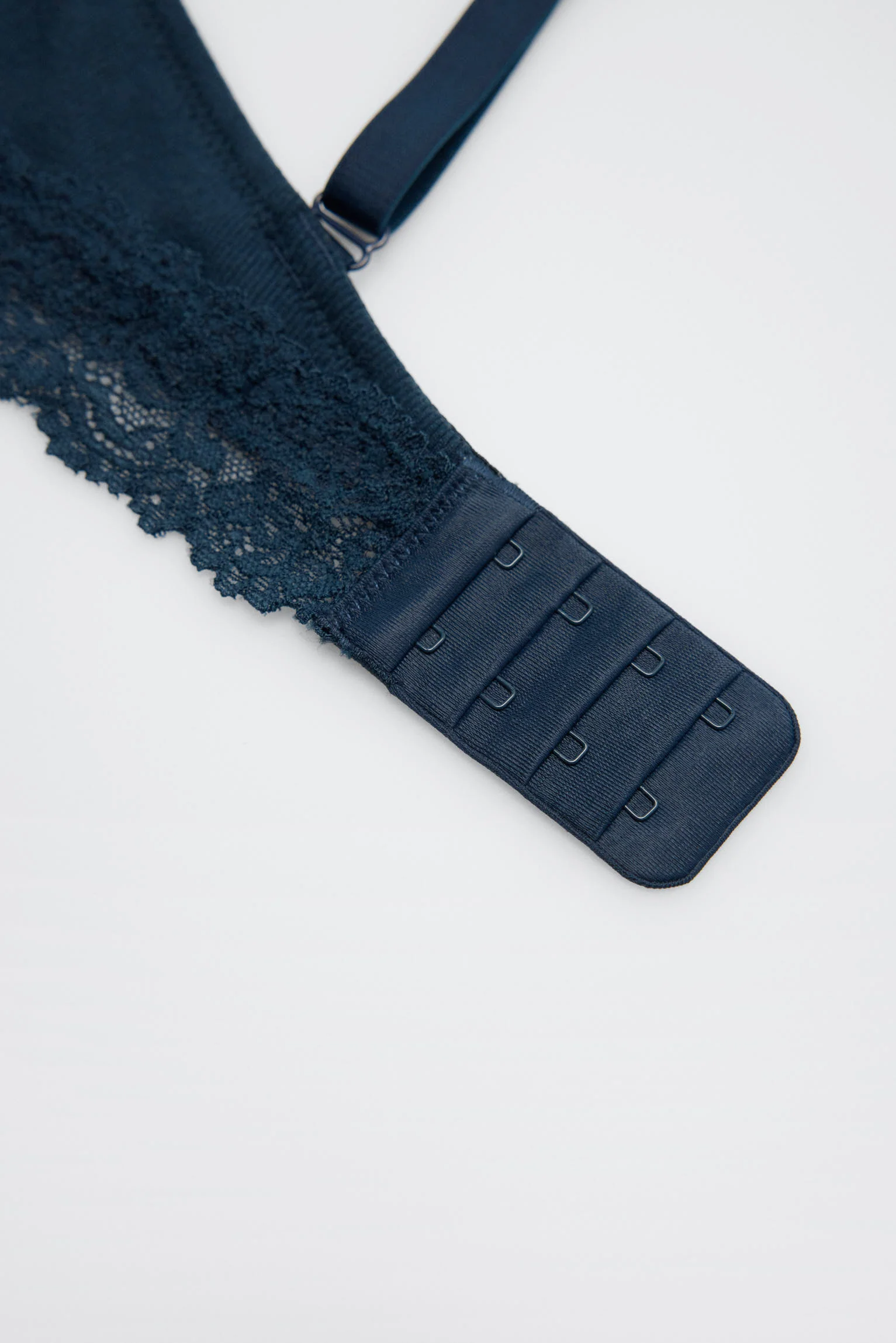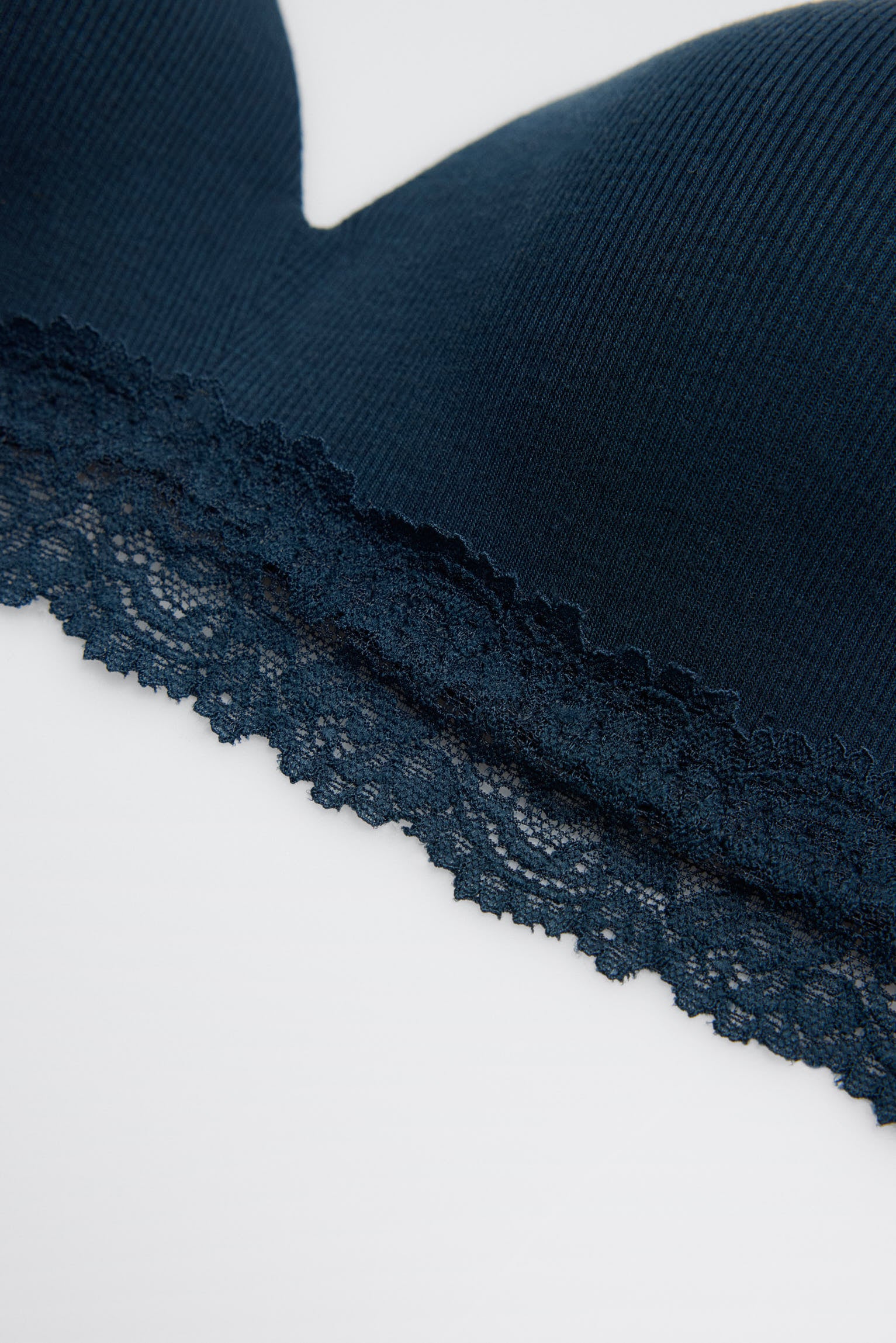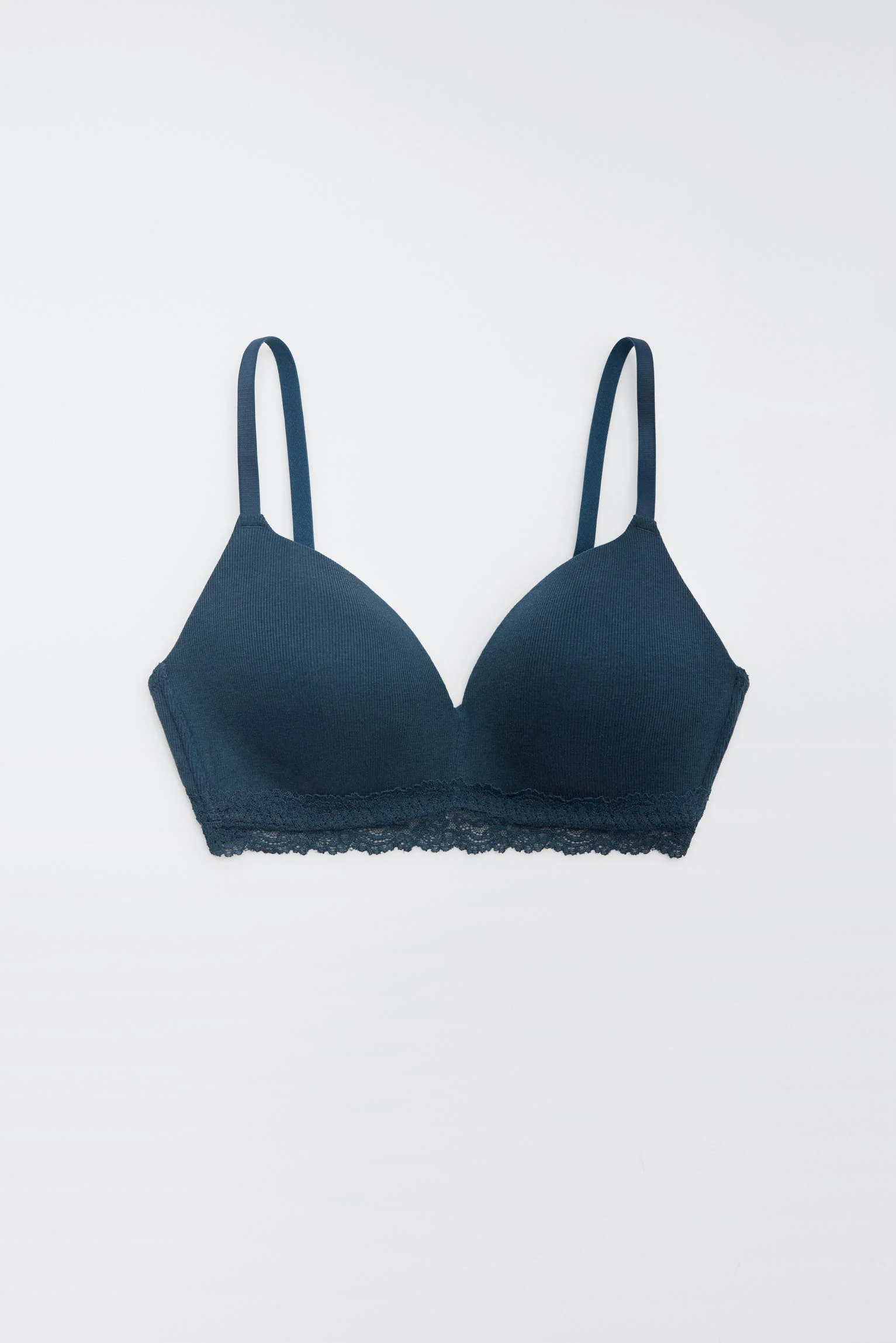 Reggiseno imbottito a coste senza ferretto con pizzo blu navy, coppa B