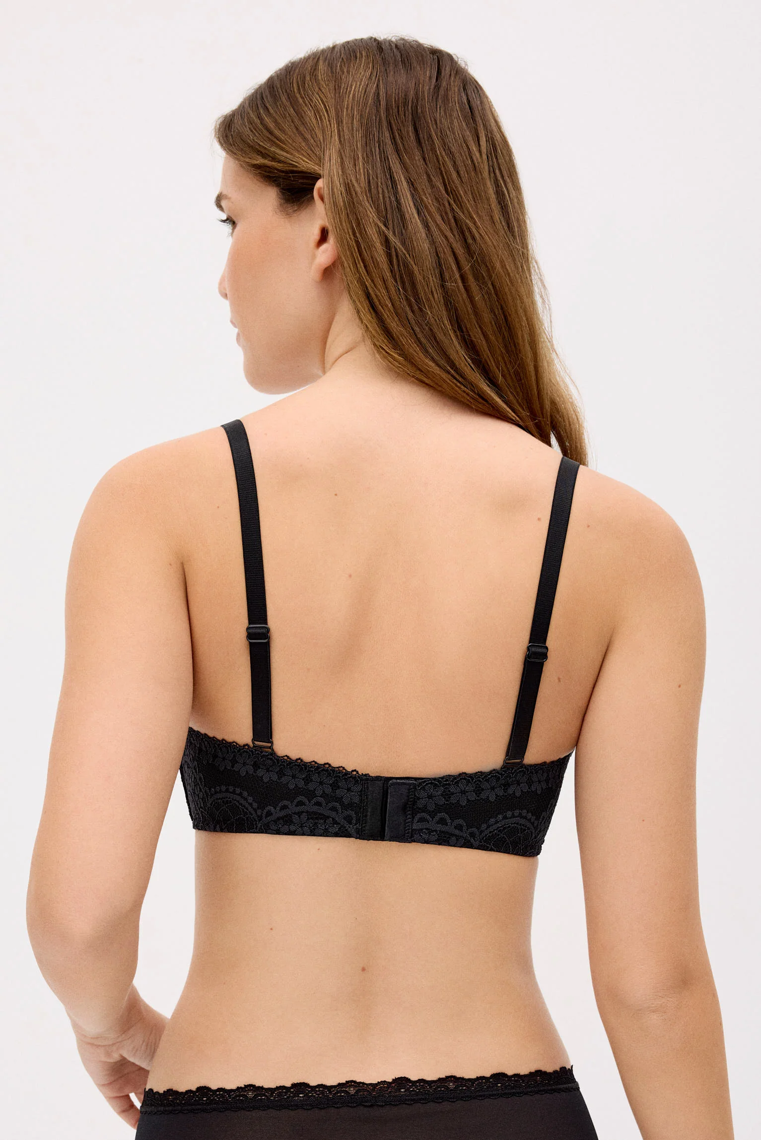 Reggiseno imbottito senza ferretto con pizzo nero