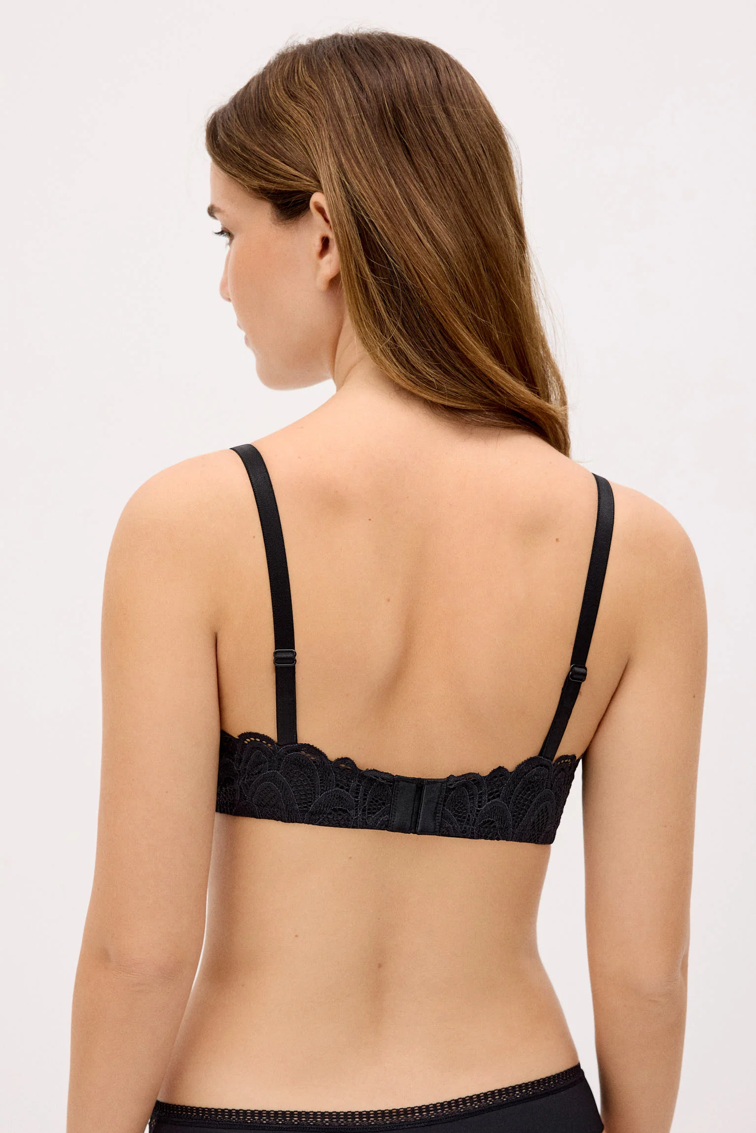 Reggiseno imbottito senza ferretto con pizzo nero