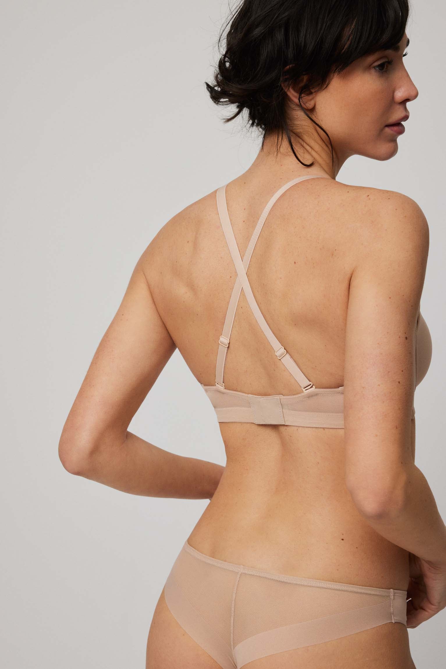 Reggiseno multiposizione con ferretto removibile e spalline imbottite. Schienale con silicone per maggiore sostegno e comfort. 90% poliammide, 10% elastan