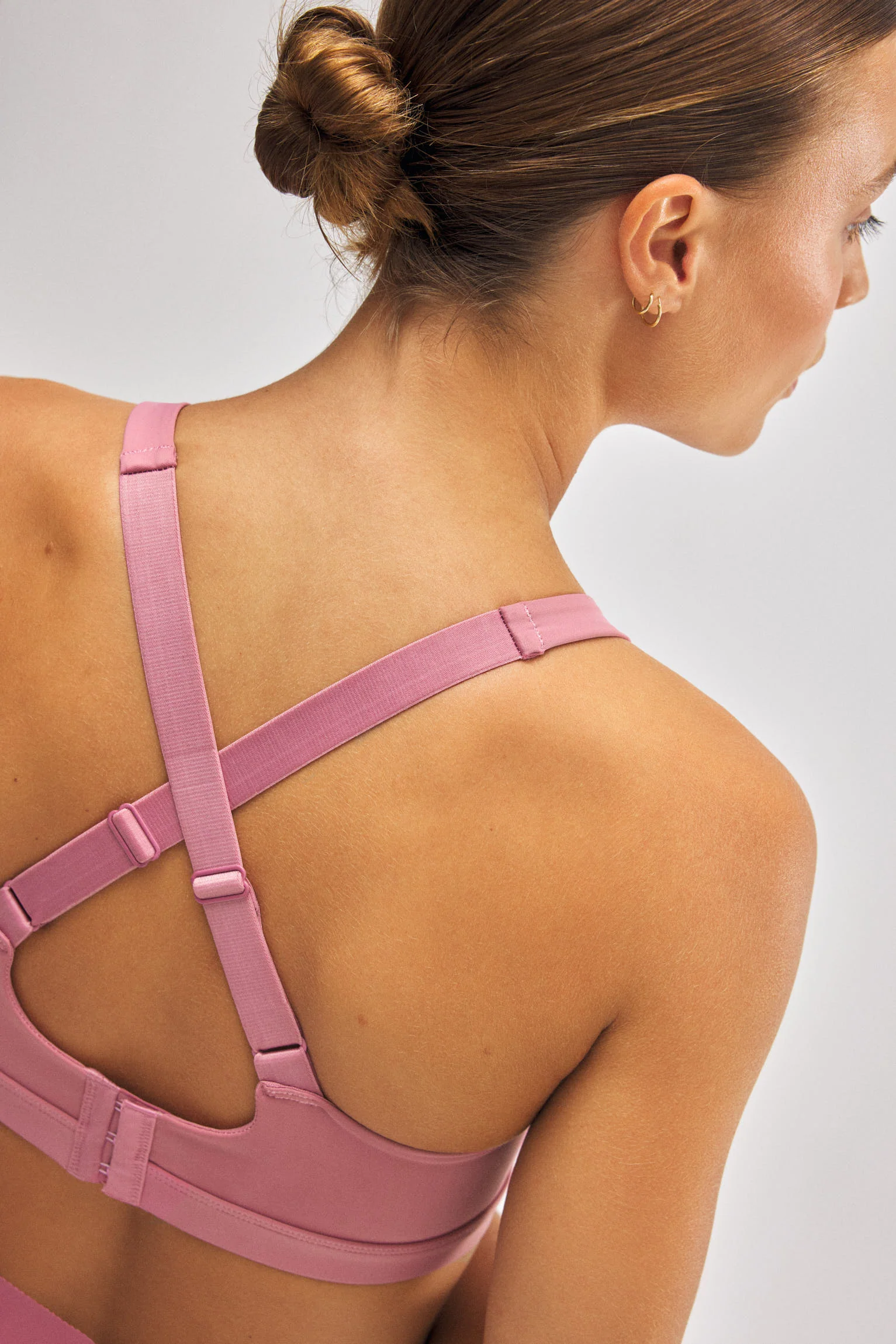 Questo reggiseno sportivo รจ stato progettato per offrire il massimo supporto durante gli allenamenti ad alta intensitร . La sua struttura tecnica, insieme ai dettagli regolabili, offre una vestibilitร personalizzata e sicura ogni volta.