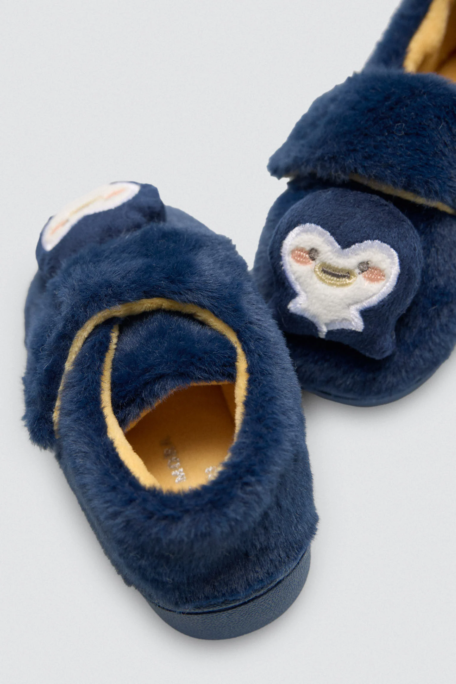 Pantofole per neonati con velcro e pinguino ricamato, interno morbido e soletta rimovibile