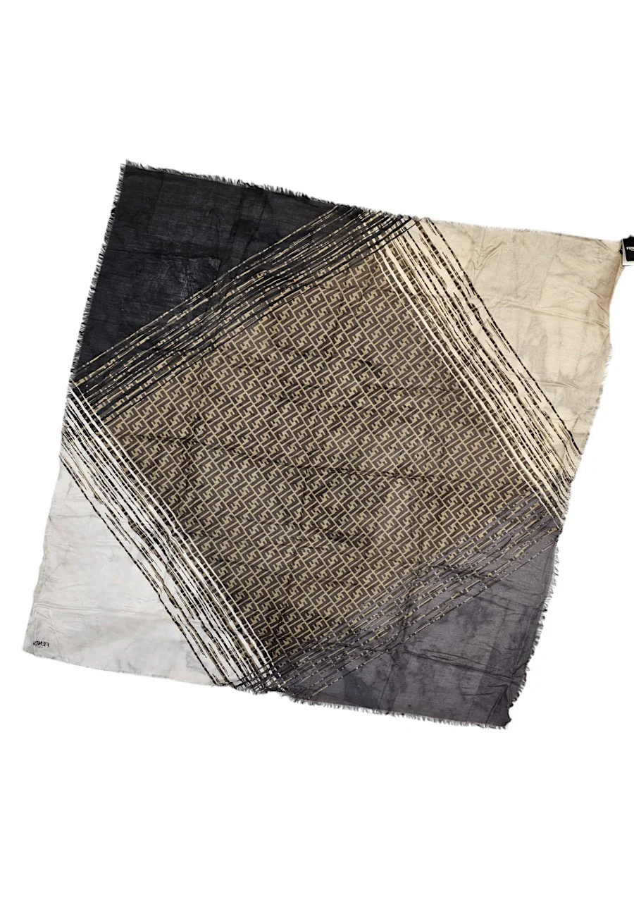 Scialle Fendi in pregiato misto lana & seta con fantasia zucca e geometrie. Made in Italy 50% seta 50% lana