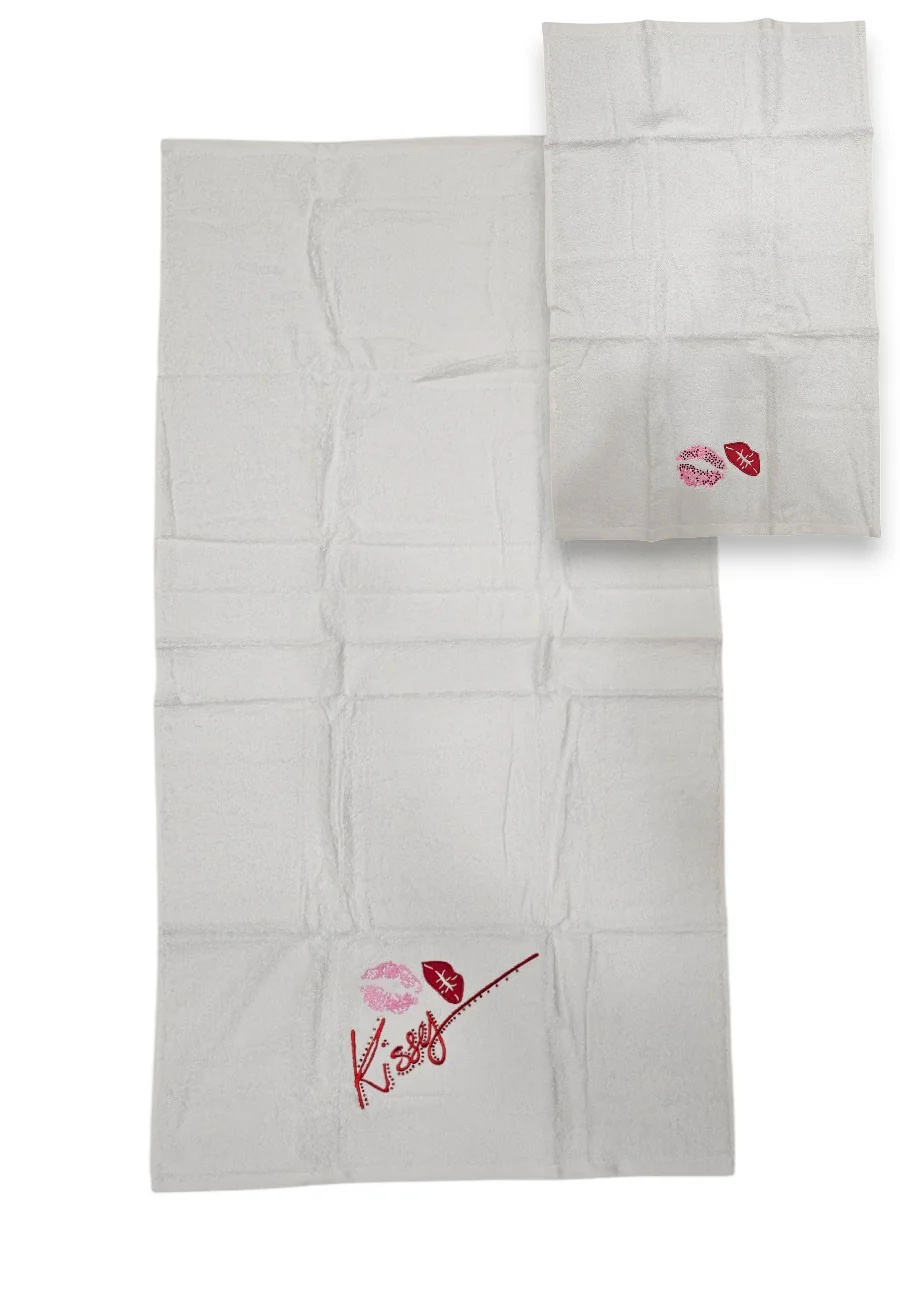 Set Blu Girl by Blumarine composto da coppia di asciugamani grande e piccolo in spugna ricama e strass. 40 x 60 cm & 60 x 110 cm 100%Cotone idrofilo 450gr./mq