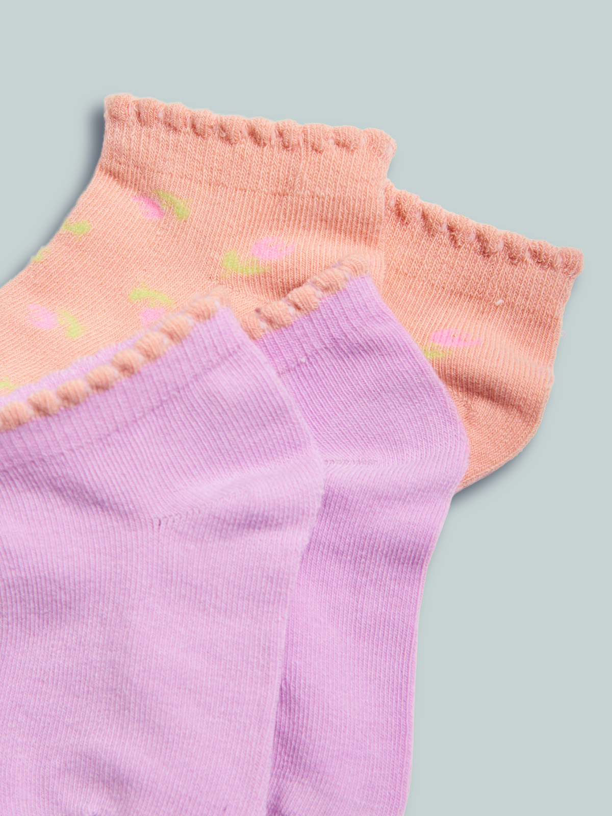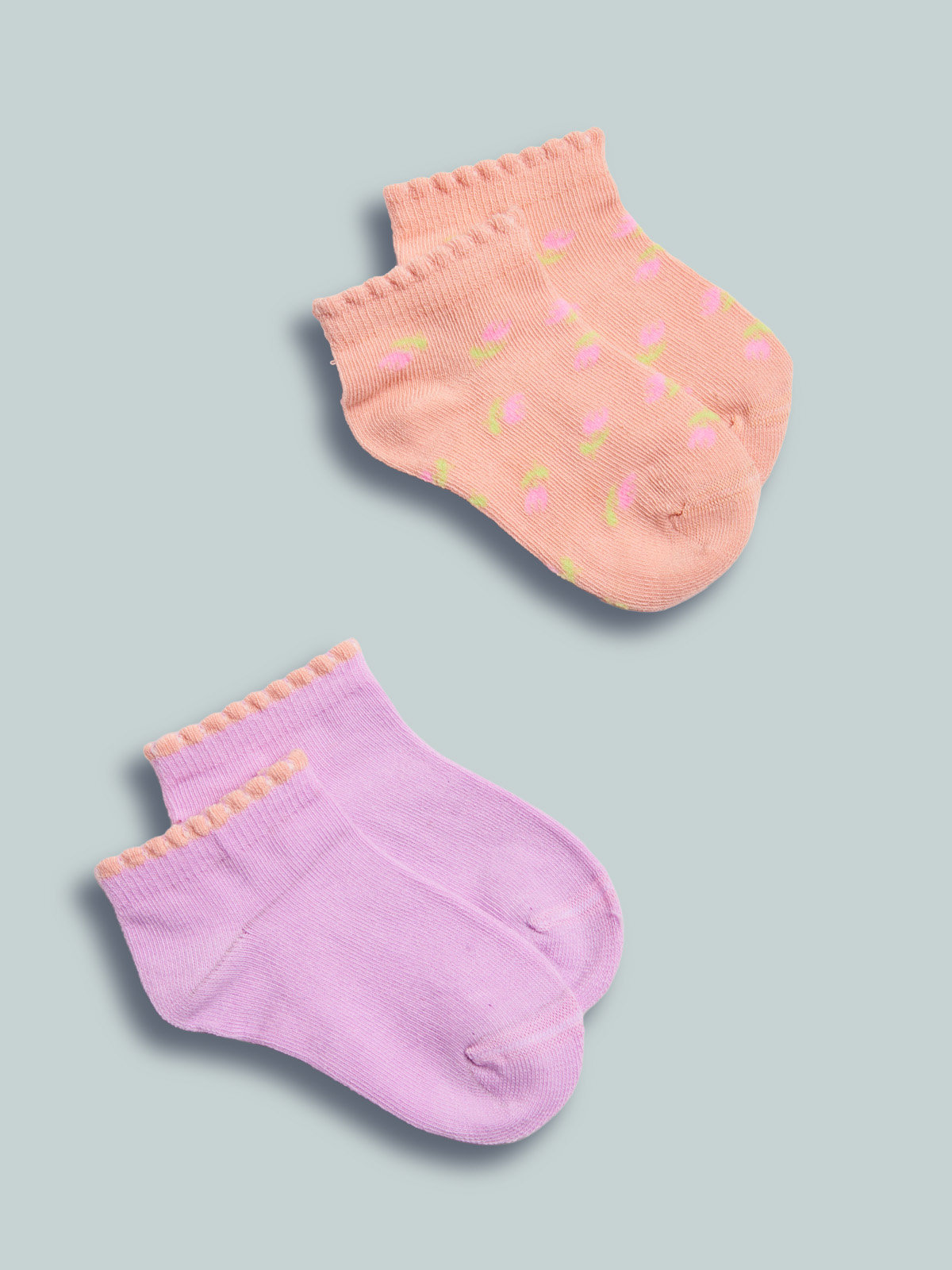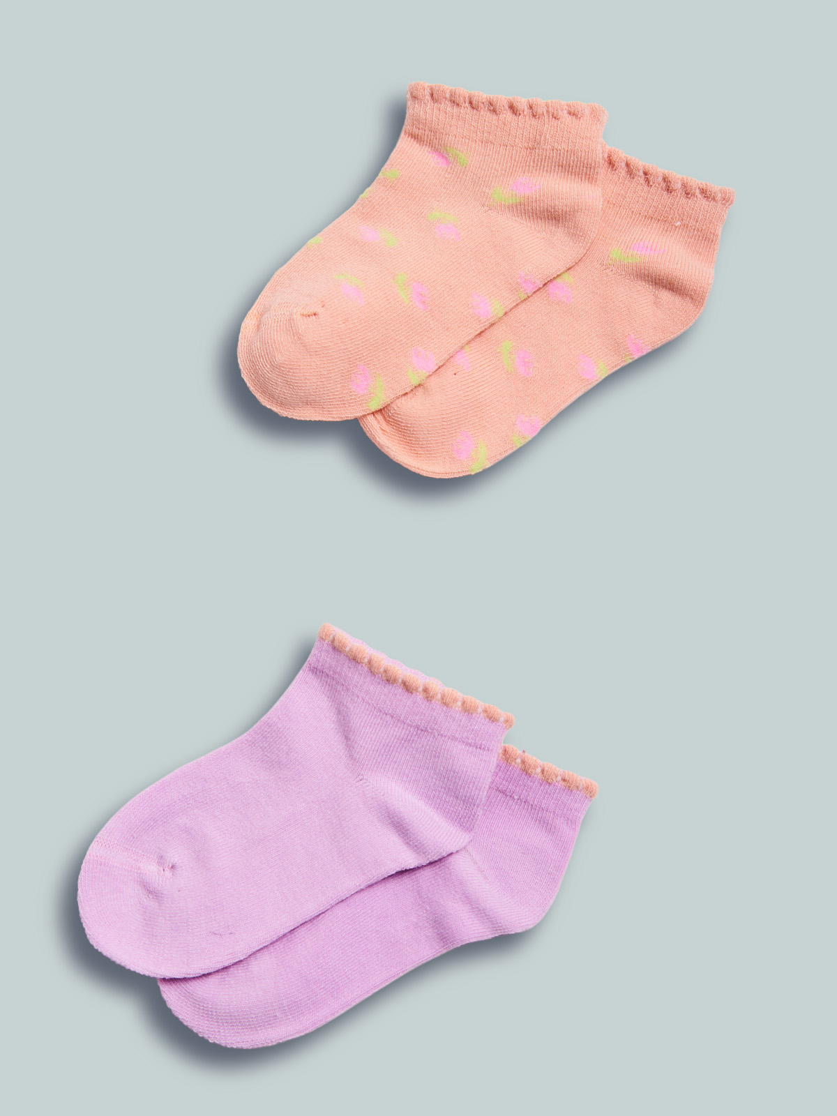 Set due paia di calzini in maglia misto cotone fantasia tulipani e unito. Ideali da indossare a scuola per un look sempre alla moda.