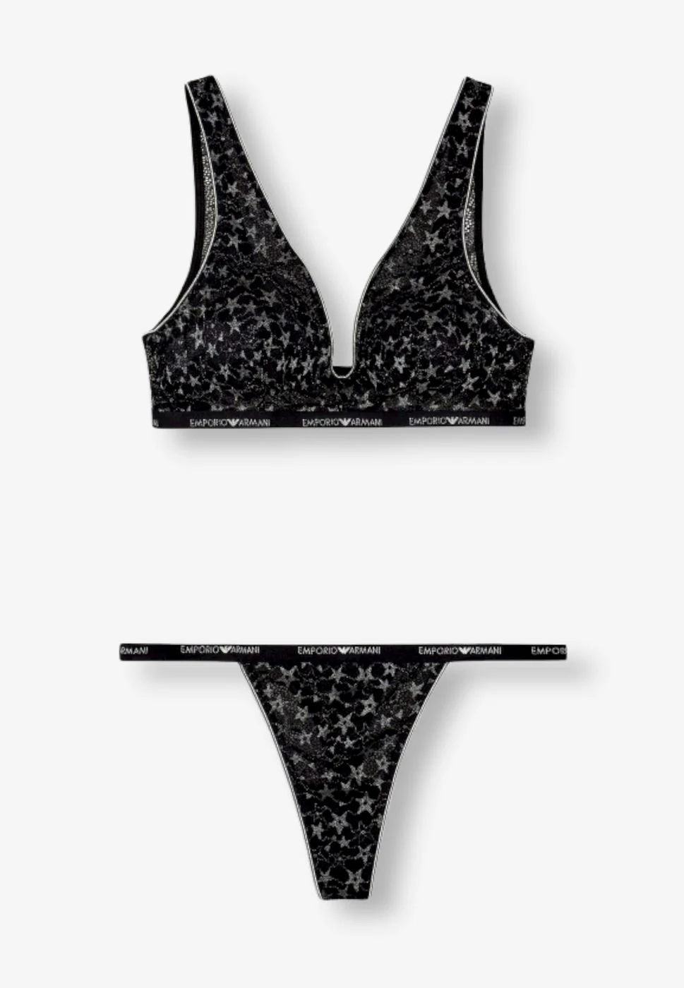 completo composto da bralette e perizoma coordinati con fantasia stars. Gift box in metallo.