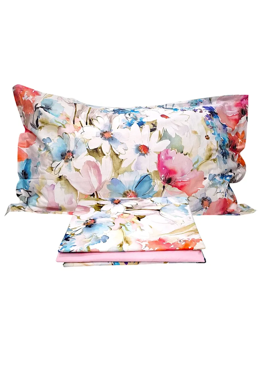 set lenzuola copriletto – Mirabello – acquarello di fiori