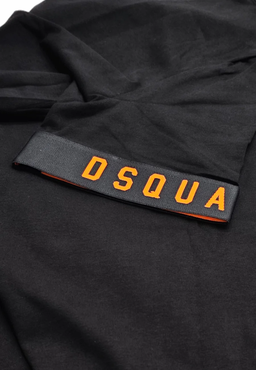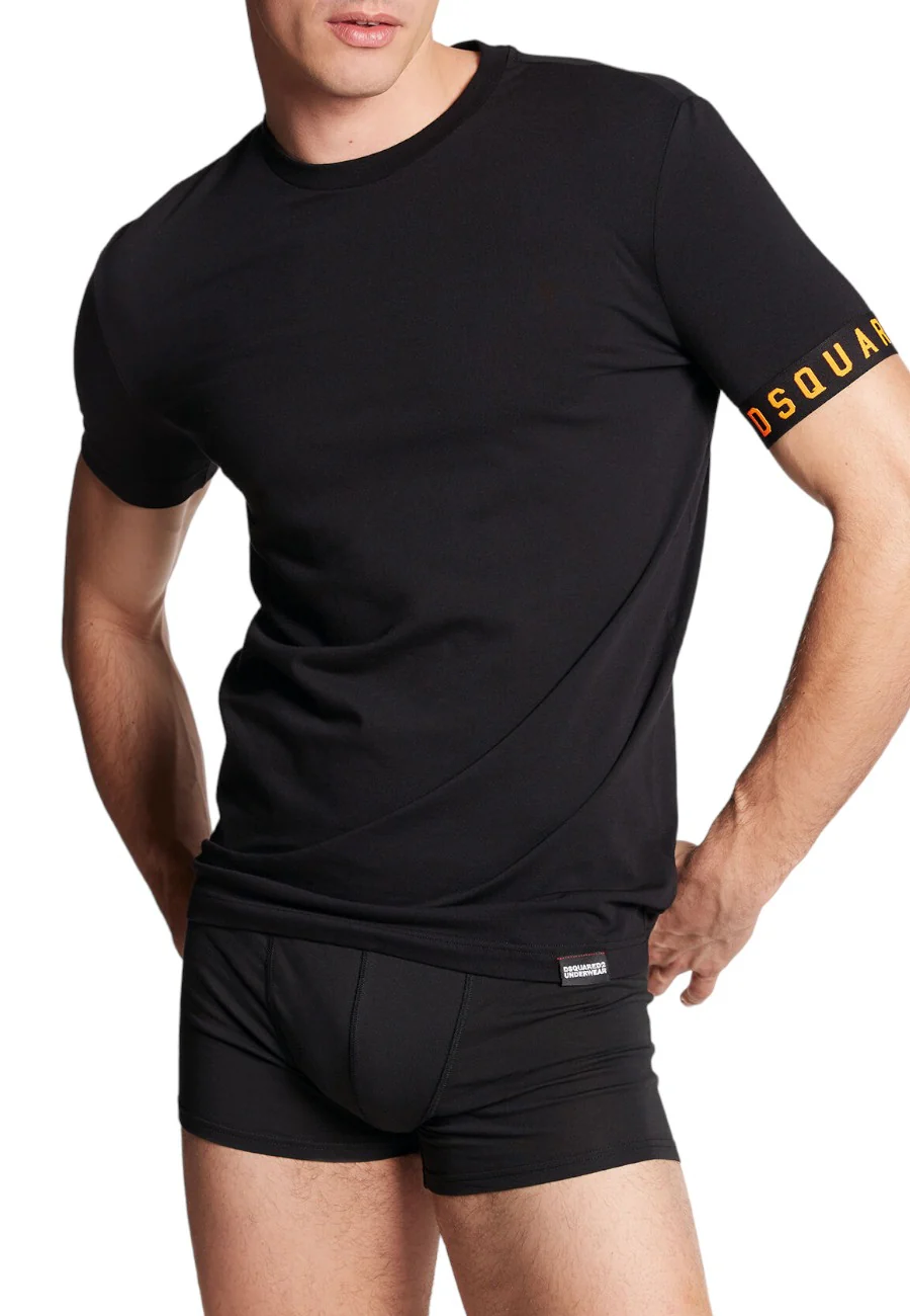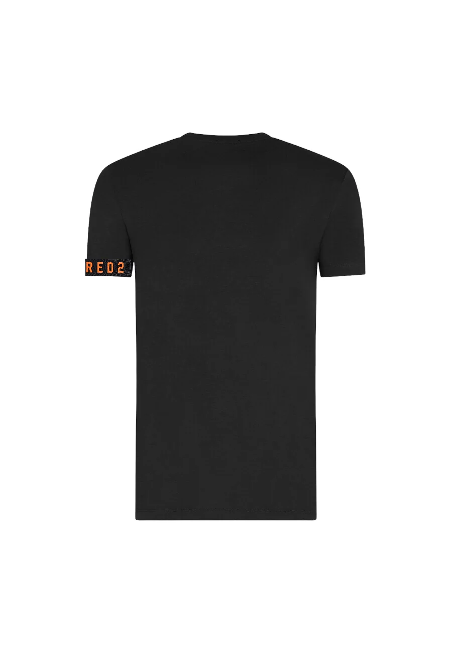 shirt fondo nero con elastico logato arancione sul braccio. 95% cotone 5%elastan