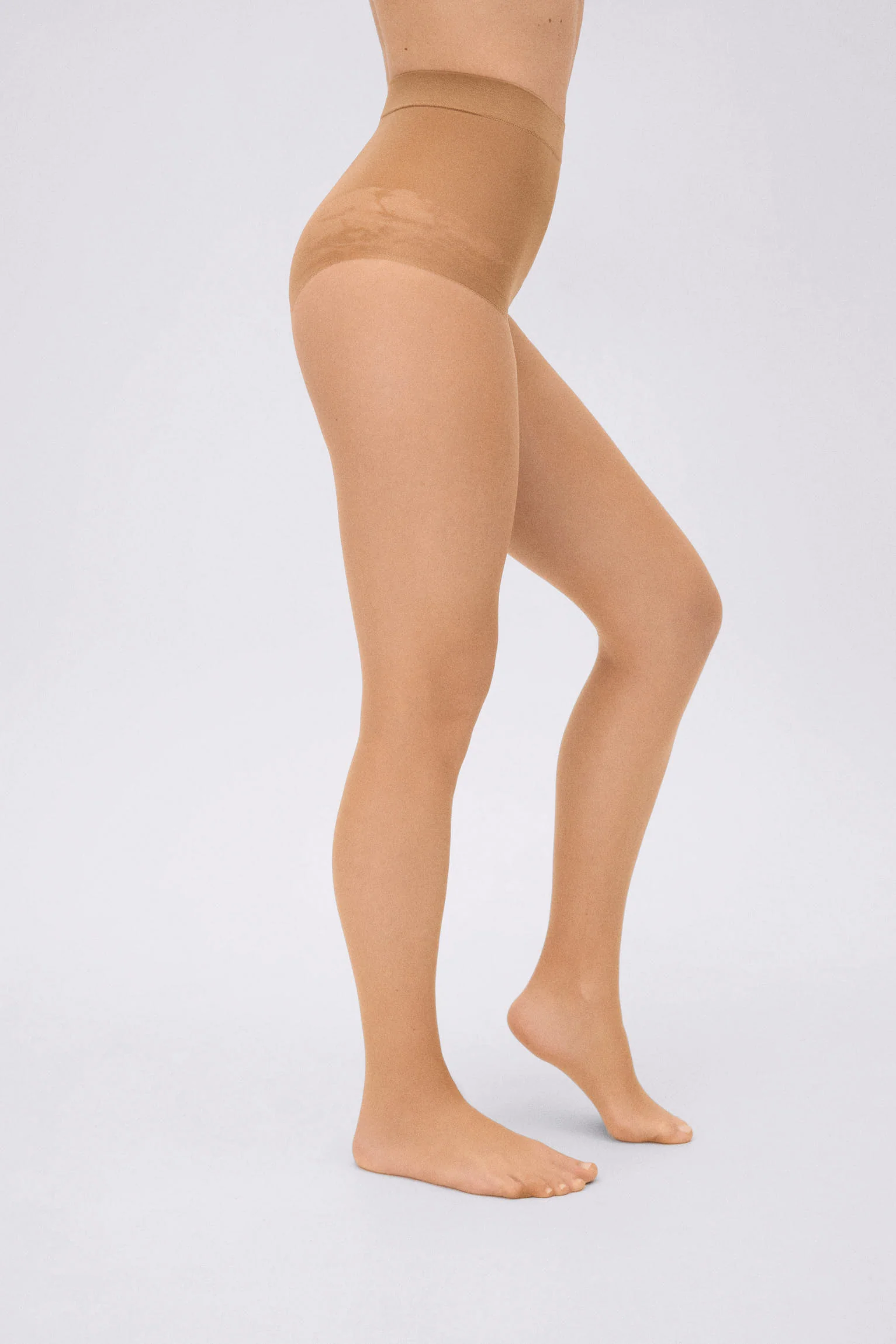 Collant compressivi leggeri 10 denari color marrone chiaro per pelli abbronzate.