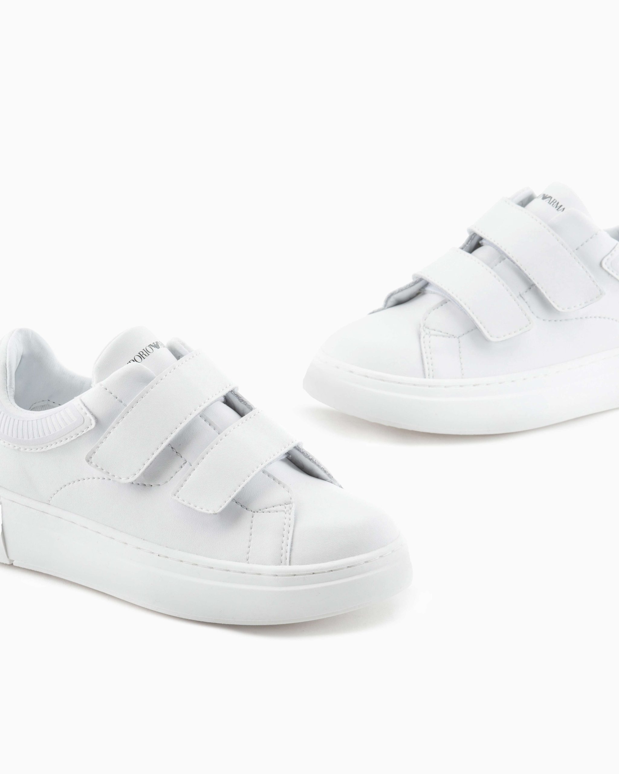 Emporio Armani sneakers per bambini realizzate in pelle naturale. Modello con soletta in tessuto comoda e facile da pulire. Una punta rotonda leggermente rinforzata consente alle dita dei piedi di adattarsi comodamente nella scarpa senza troppa pressione o larghezza.