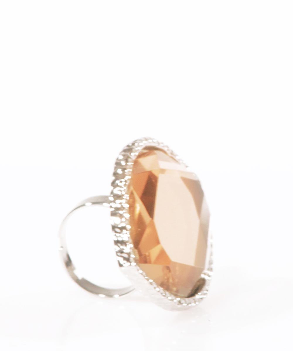 SODINI – Anello Regolabile con Maxi Cristallo Ambra e Profilo Lavorato