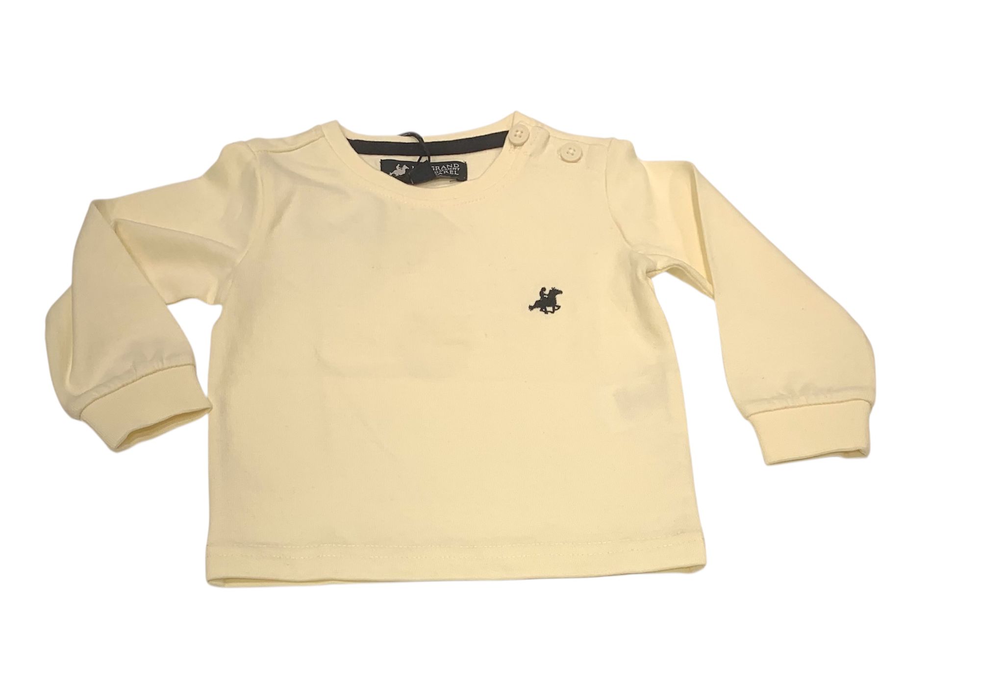 Maglia in caldo cotone Con logo ricamato in contrasto di colore, con polsino Nelle taglie mesi ha i bottoni sul girocollo Composizione 100% cotone