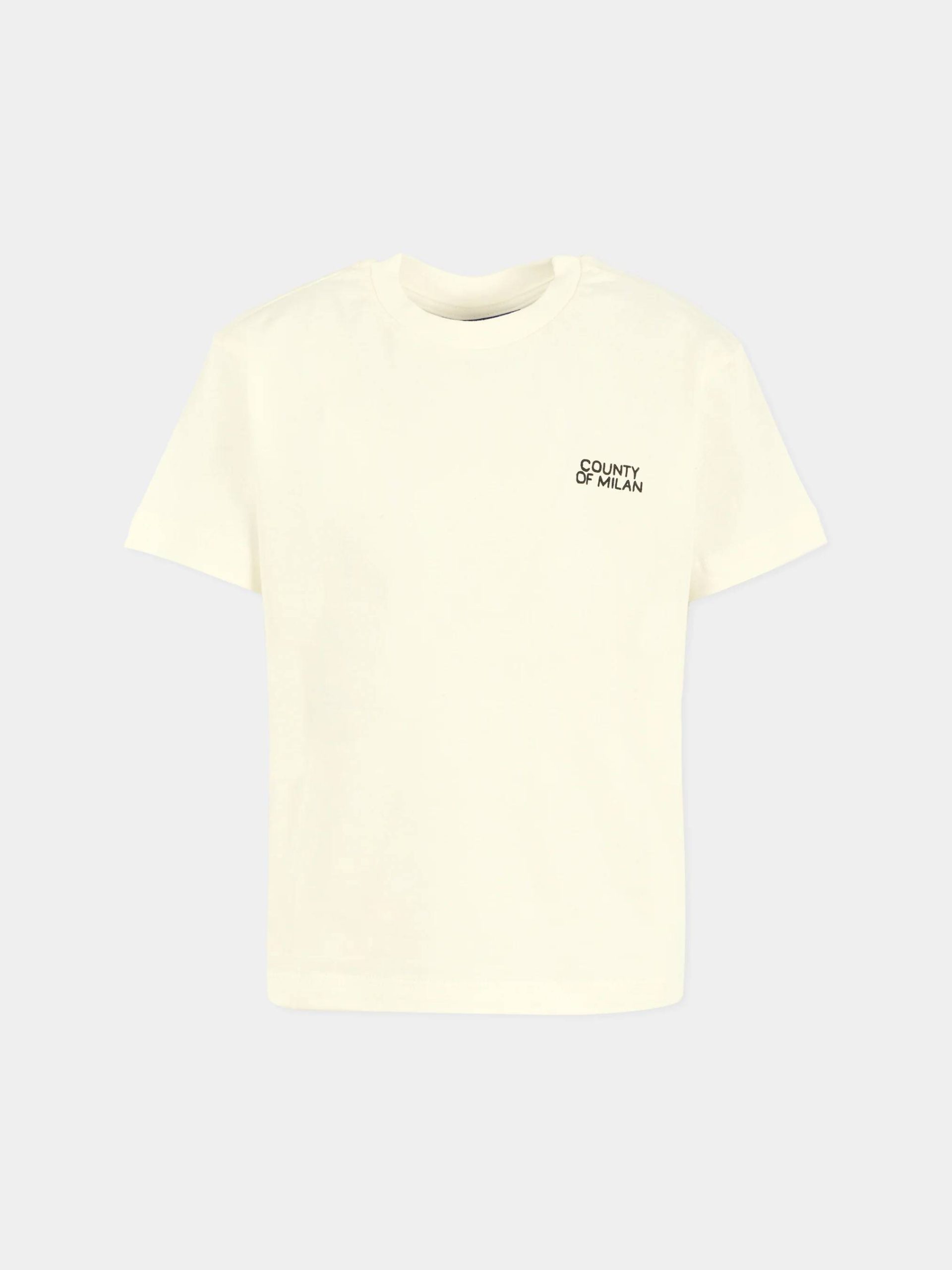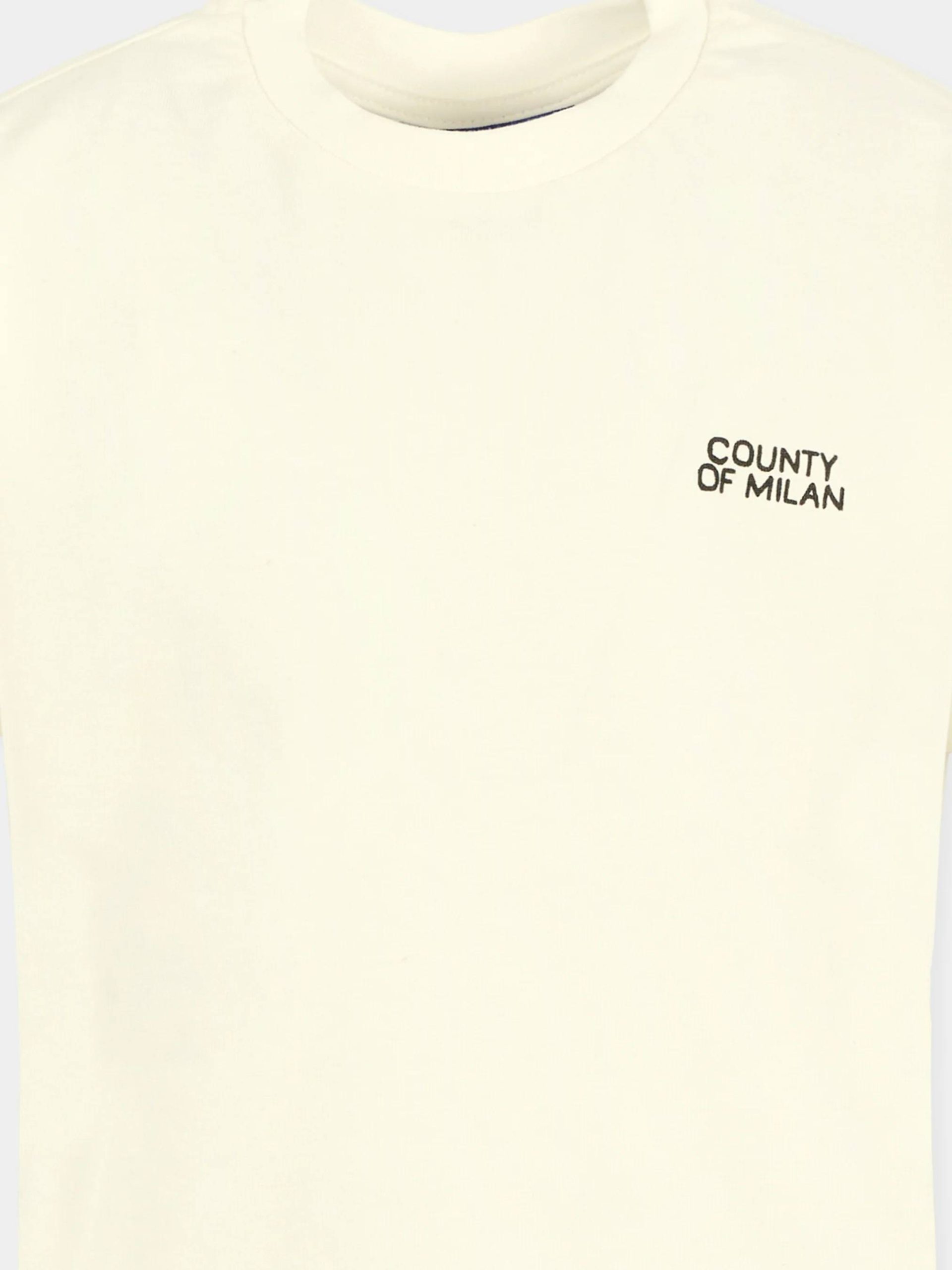 T-shirt in 100% cotone dal fit morbido. Logo geometrico stampato sul RETRO. Stampa “COUNTY OF MILAN” sul PETTO.