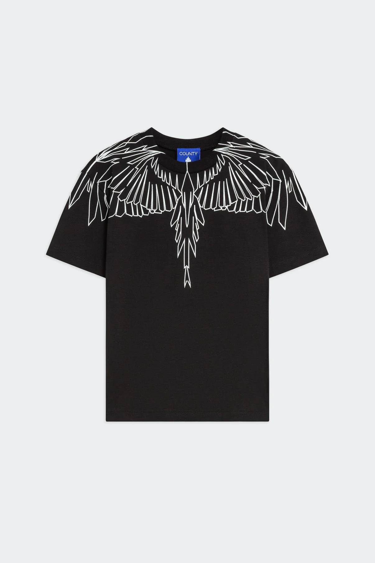 T-shirt in 100% cotone dal fit morbido. Stampa continua fronte e retro con motivo grafico iconico con ali stilizzate in contrasto bianco.