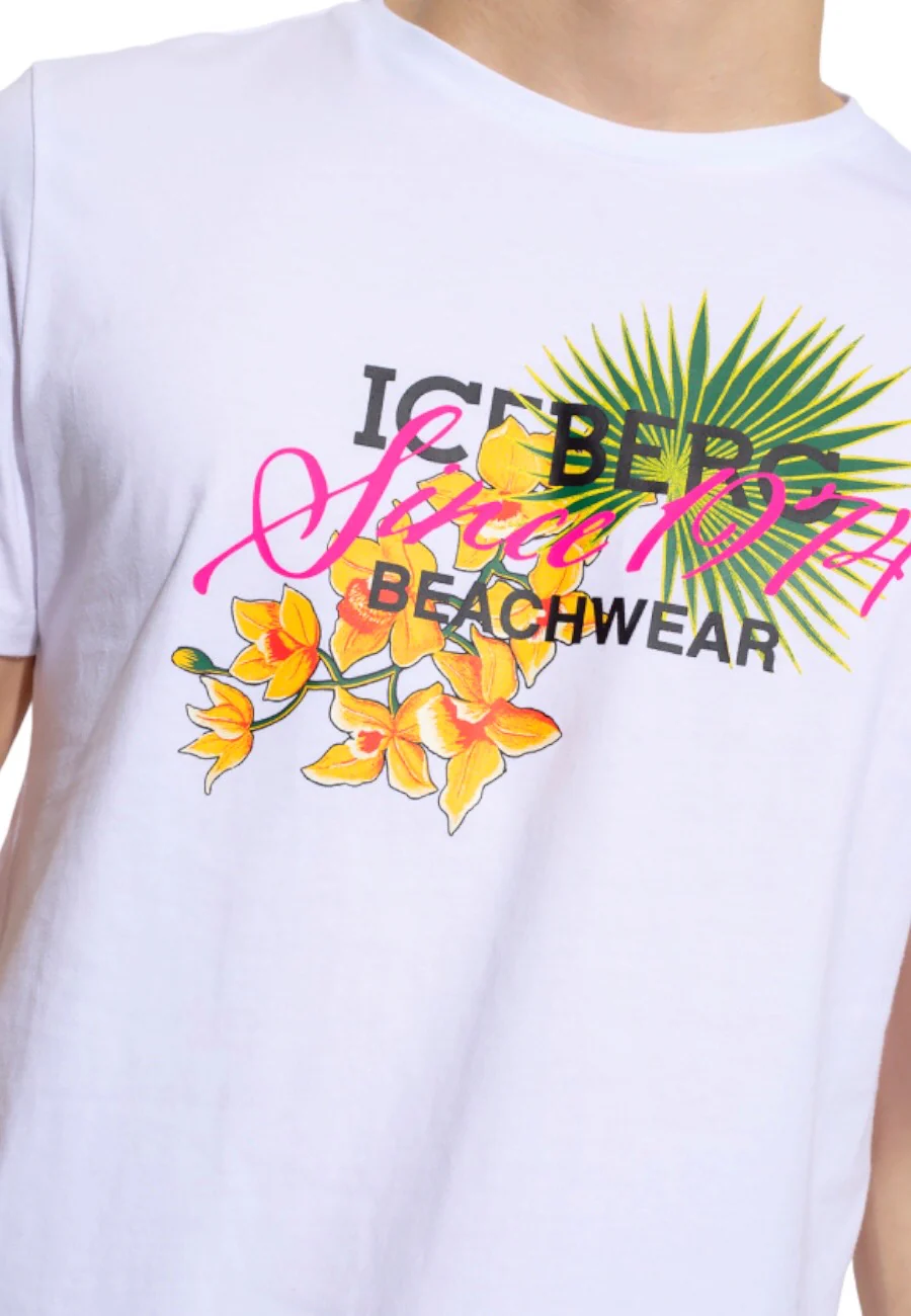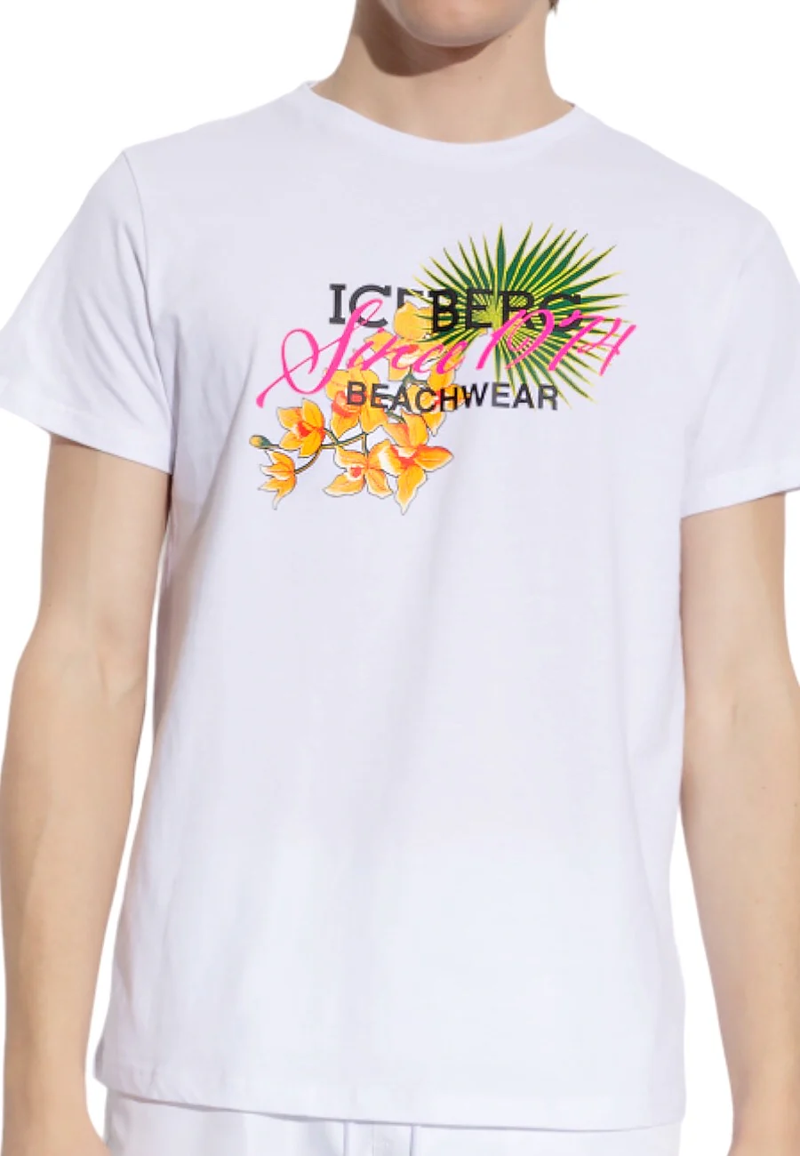 T-shirt mezza manica con stampa flower a contrasto. 100% cotone
