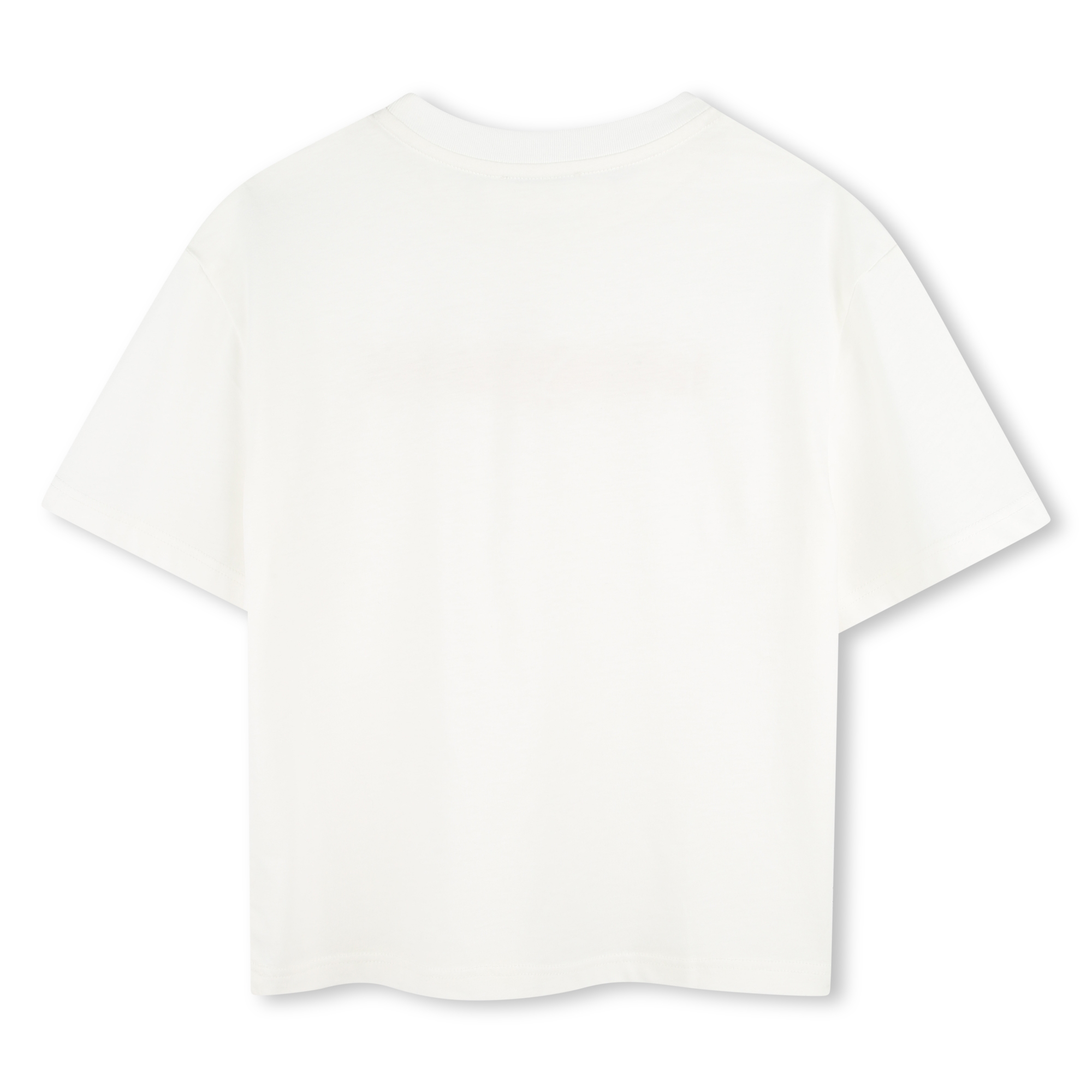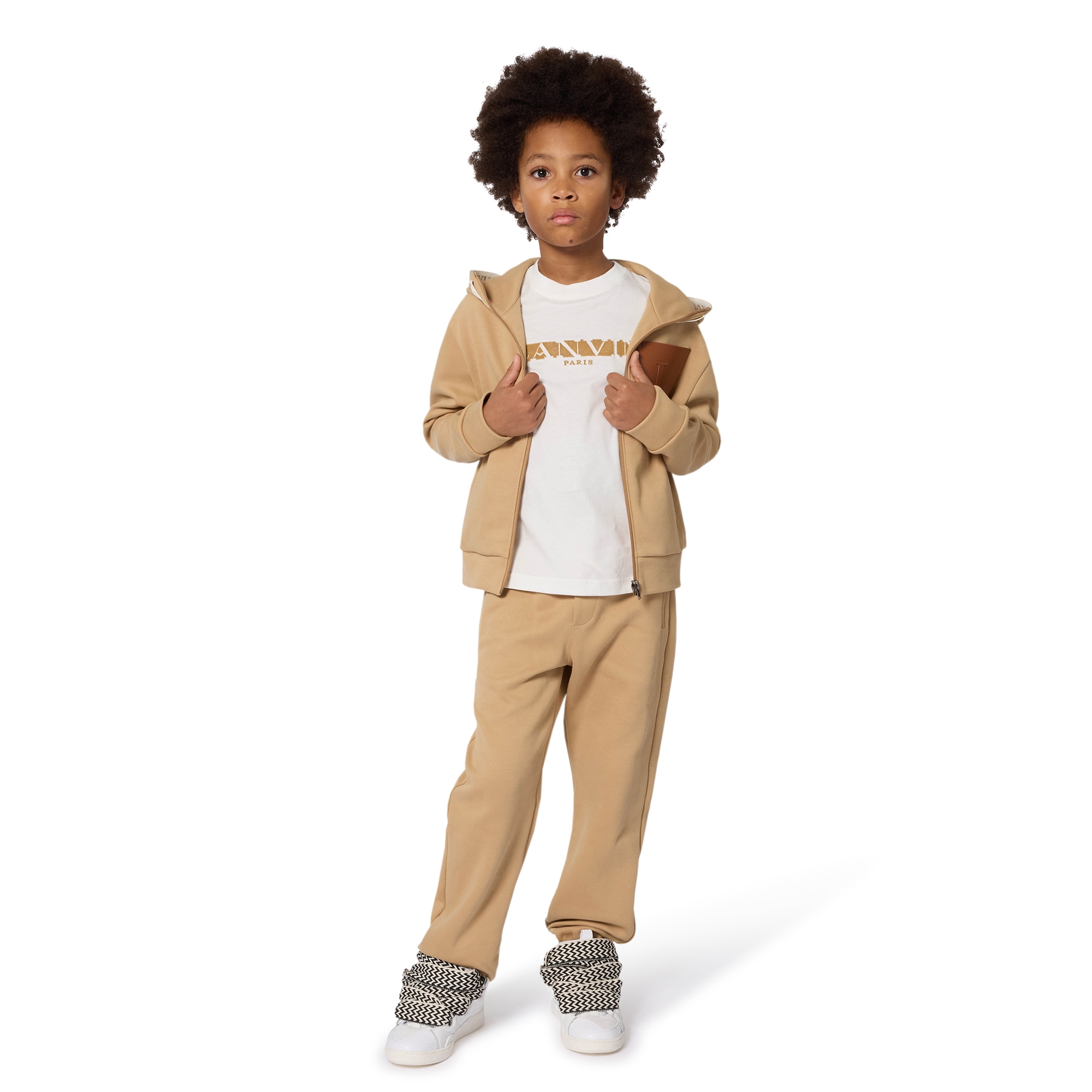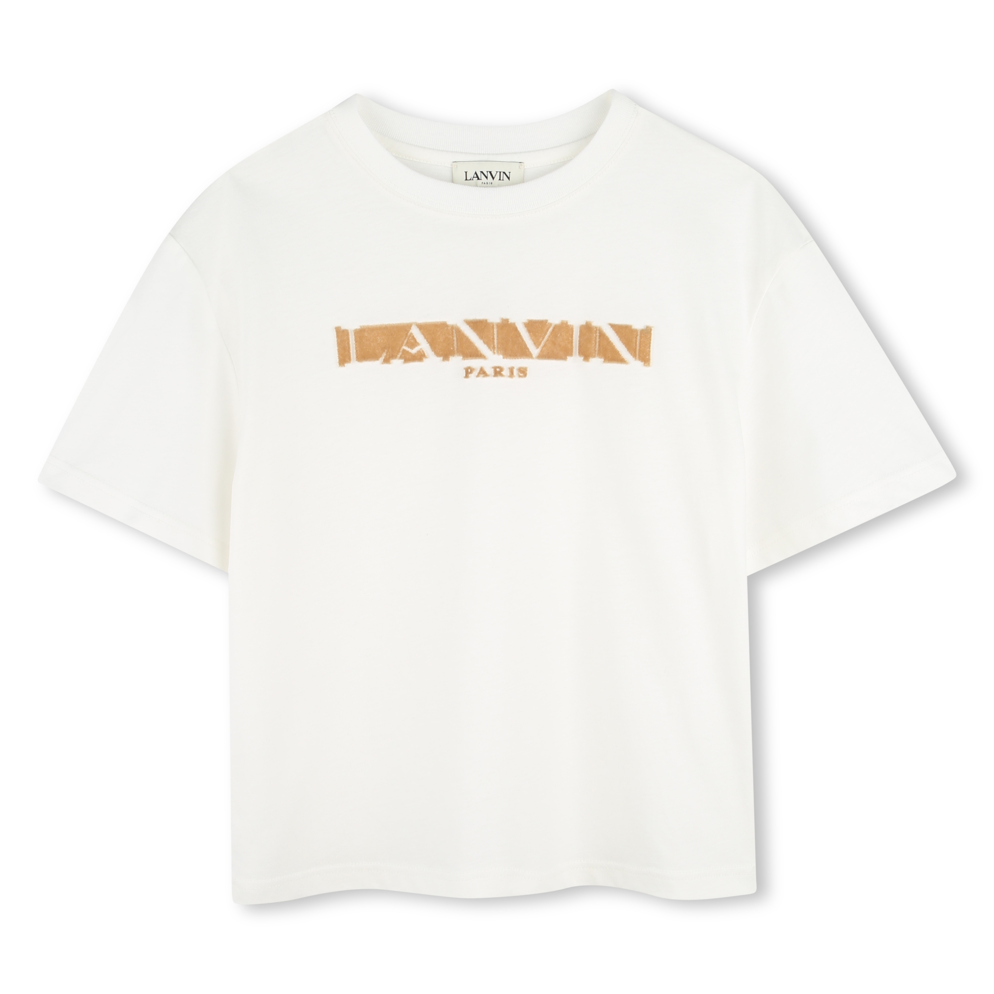 T-shirt bambino/ragazzo cotone 100%, manica corta, base colore panna con stampa logo Lanvin sul davanti, girocollo, orlo dritto.
