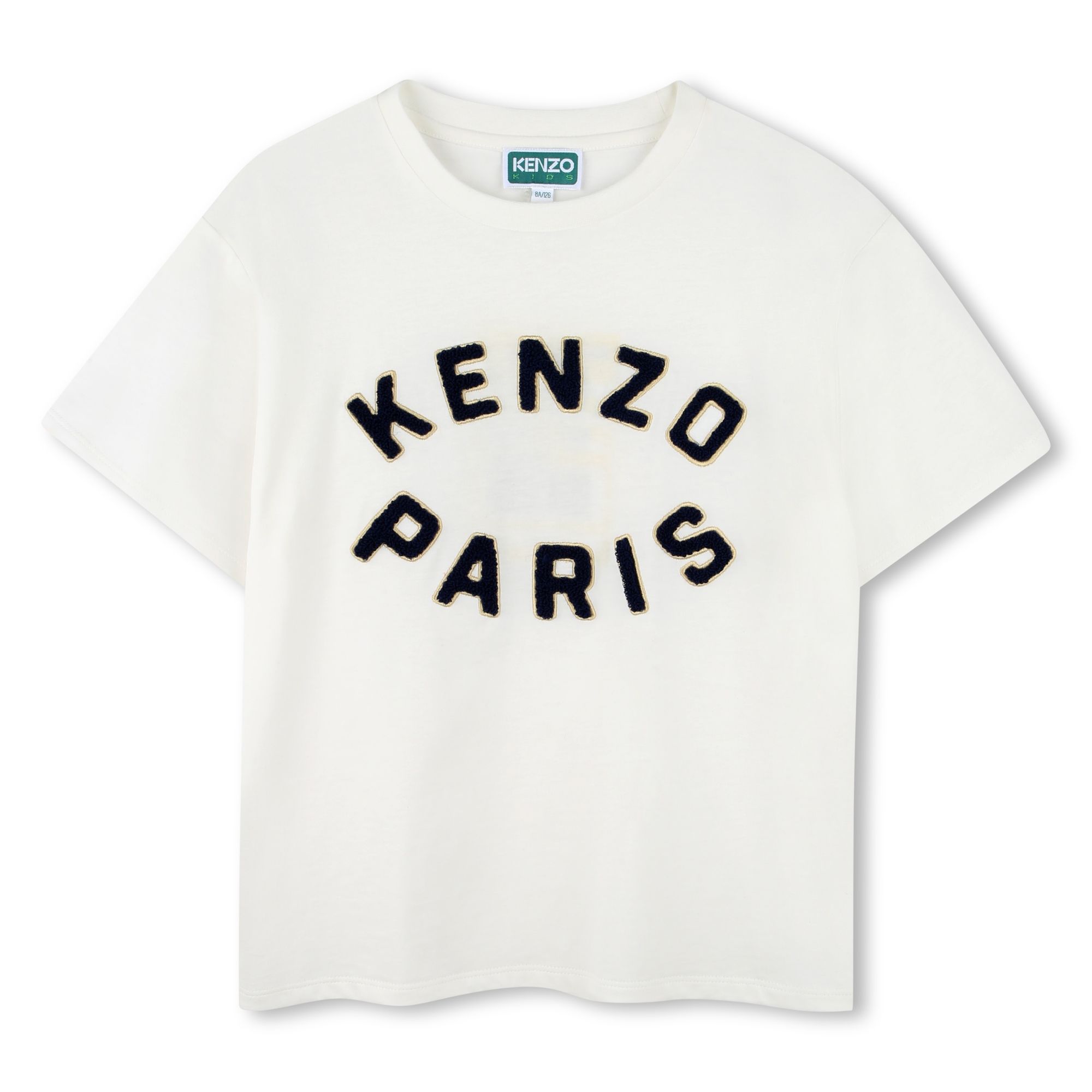 T-shirt per bambino Kenzo Kids. Realizzato in cotone 100%. Il prodotto presenta un colore bianco, logo sul davanti, maniche corte, girocollo.