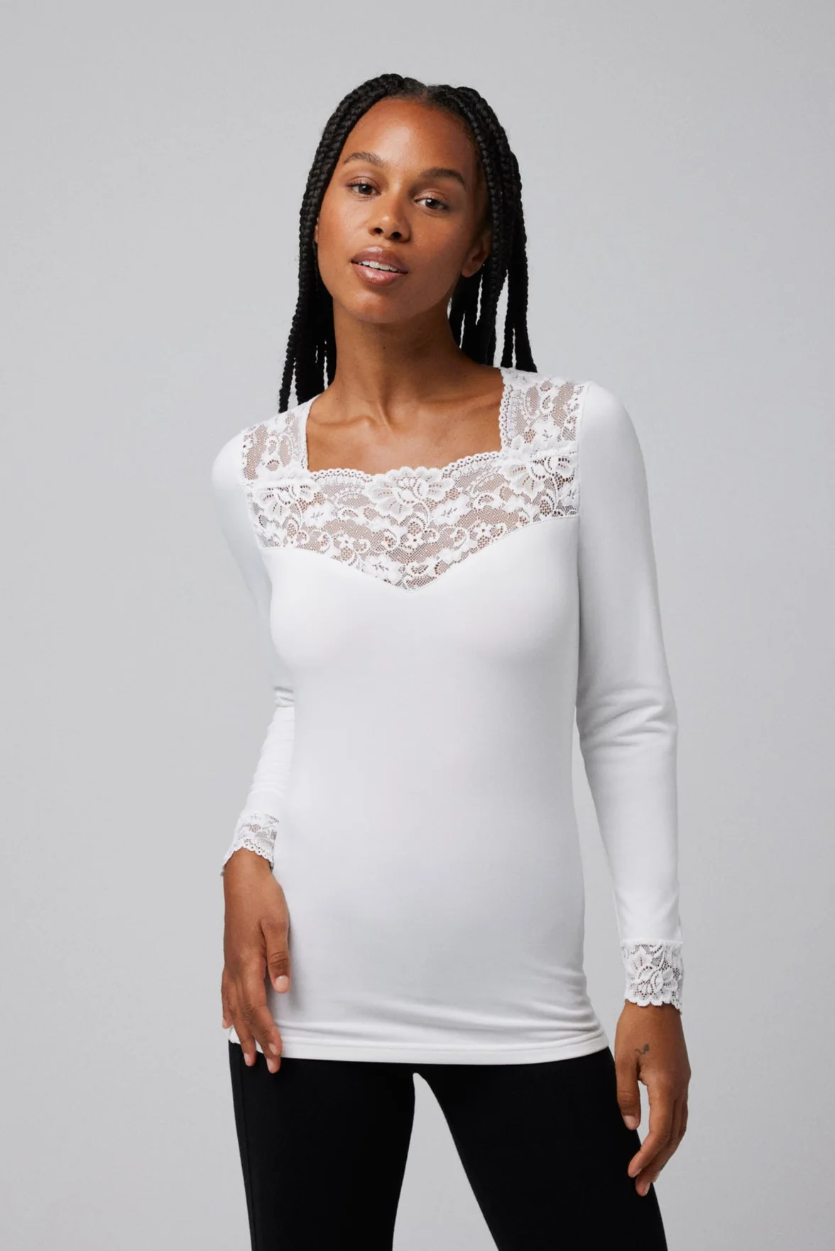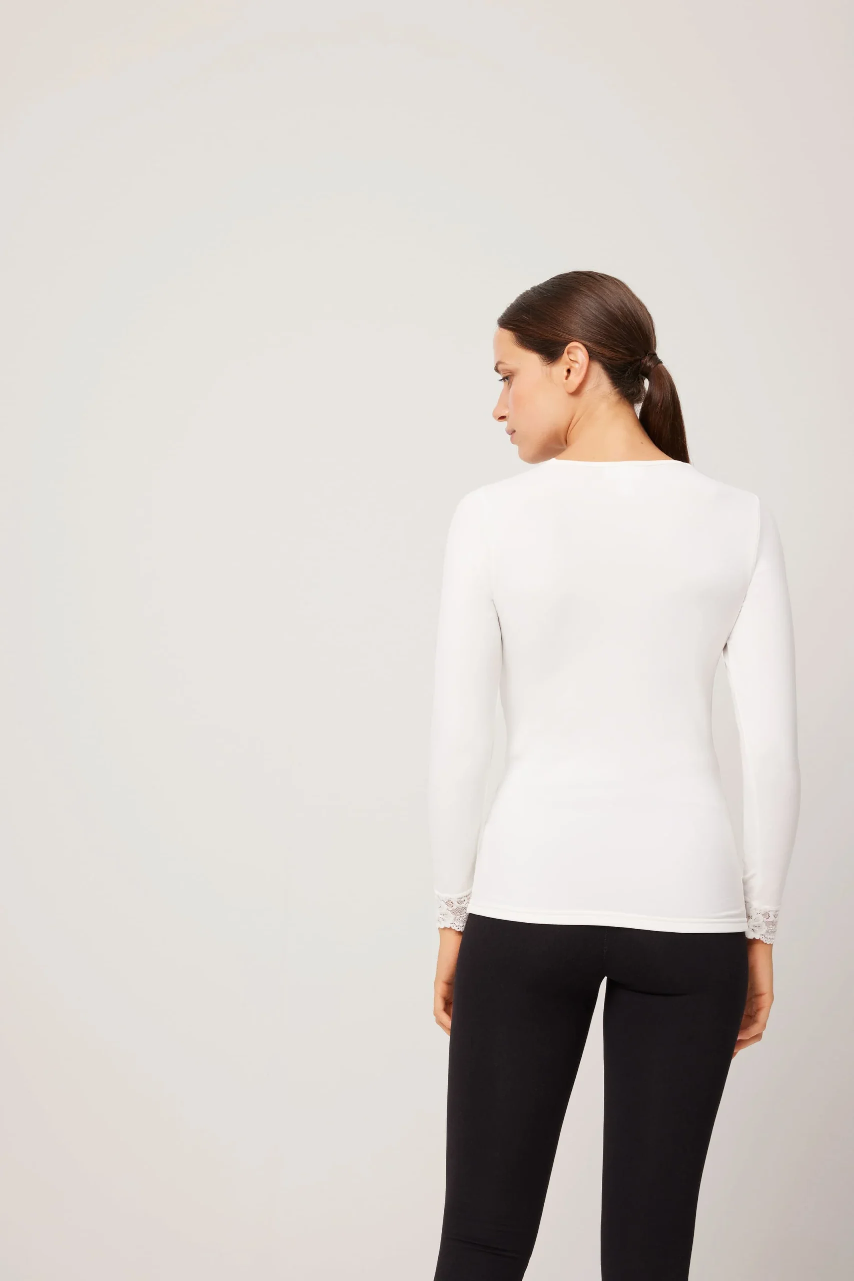 Ottieni il mix perfetto tra comfort ed eleganza con la t-shirt termica a maniche lunghe con pizzo, diventerร un must-have per tutti i giorni vita. Noi di Ysabel Mora abbiamo progettato questa t-shirt con tecnologia termica per offrirti un capo versatile; Qualunque sia l’occasione, ti protegge dal freddo senza rinunciare al tuo stile.