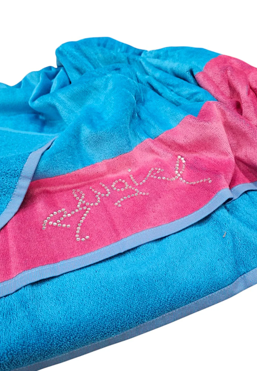 Telo oversize in jacquard cimato bicolore con strass100 X 180 CM 100%Cotone idrofilo 450gr./mq
