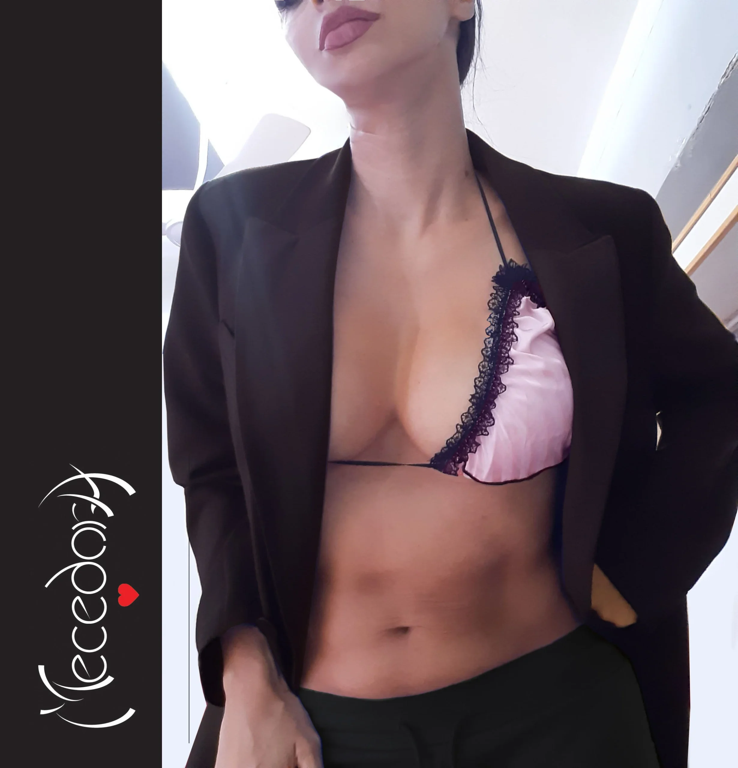 Abbinato al perizoma regolabile in coordinato, il Toppino Rosa Satin diventa un completino intimo sfizioso.