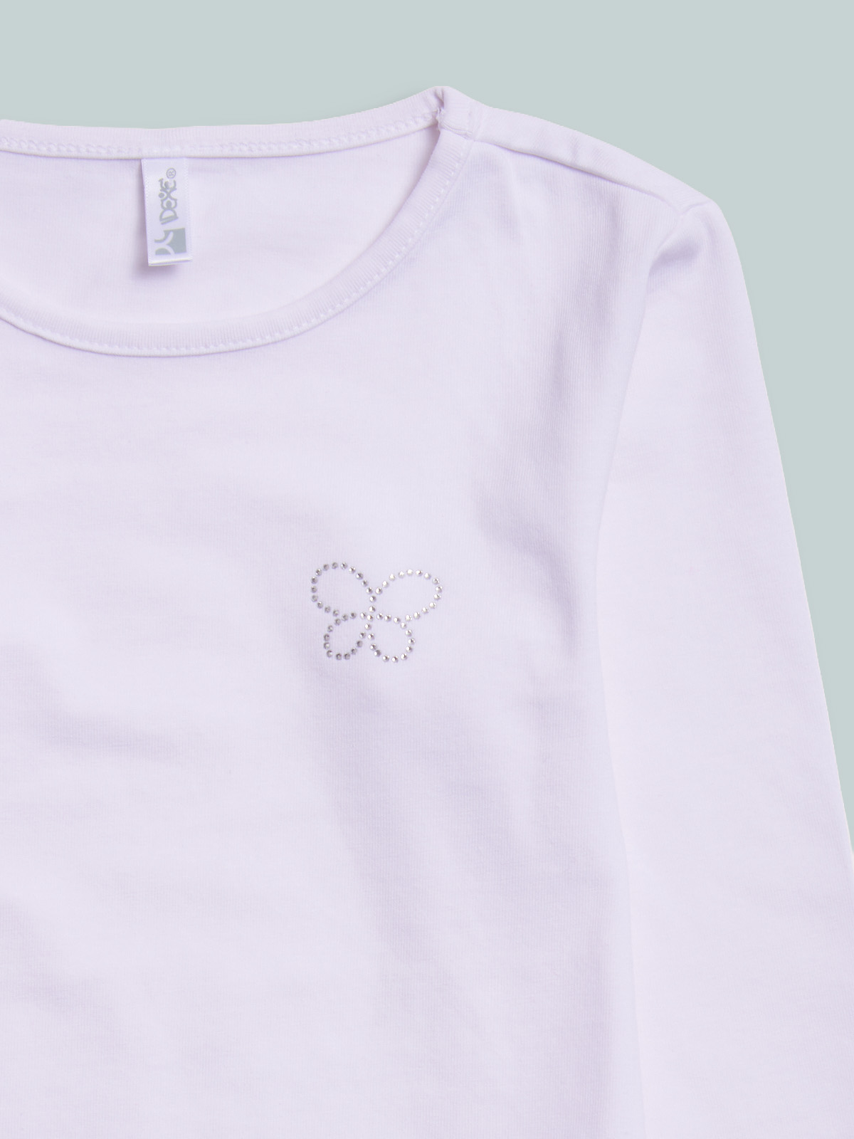 Tshirt manica lunga in morbido cotone elasticizzato, farfalla sul davanti in strass crystal. Una tshirt basica dal sapore romantico da indossare sotto agli abiti della cerimonia.