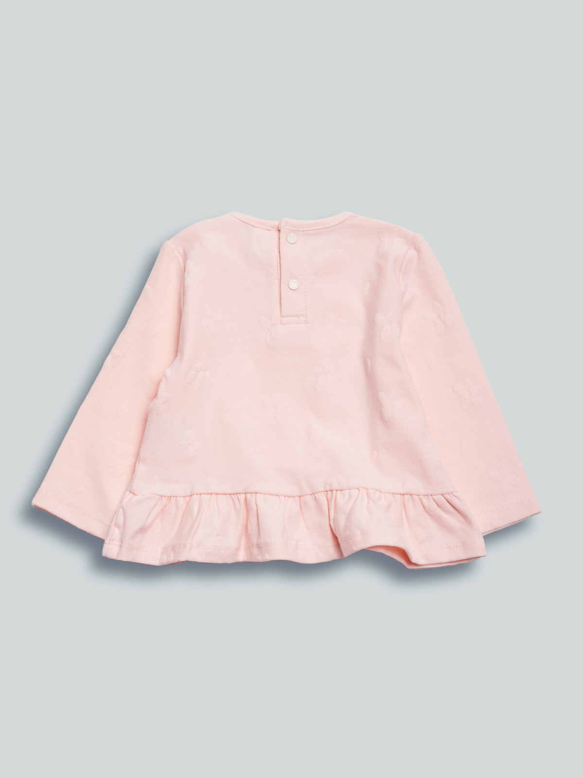 Tshirt jersey devorรจ floreale, pratica apertura dietro con bottoncini a pressione. Il fondo รจ rifinito da una balza per essere sempre alla moda. Un capo “chic” che non puรฒ mancare nell’armadio della vostra piccola.