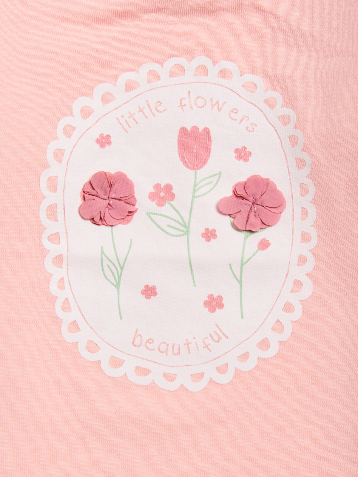 Tshirt in cotone manica lunga con romantica stampa fiori e pistilli in applicazione voile tridimensionale. Rouches al giromanica per maggiore femminilitร . Un capo con dettagli fashion, ideale da abbinare con tutto il guardaroba della tua bambina.