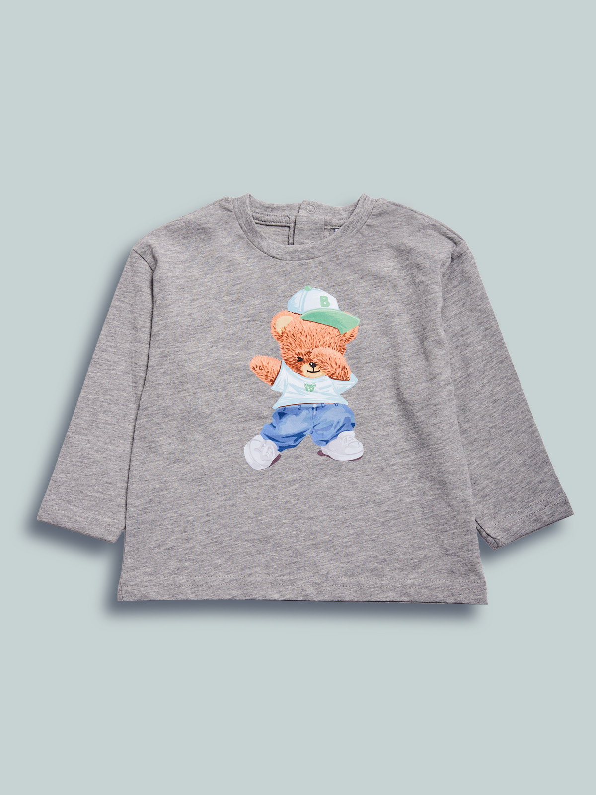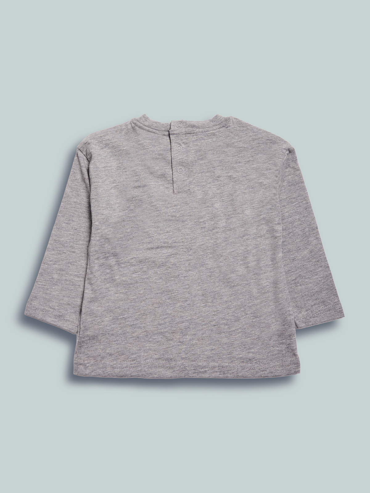 Tshirt manica lunga girocollo in cotone melange, pratica apertura con bottoncini a pressione sul retro. Stampa sul davanti. Una tshirt pratica e facile da abbinare ad un jeans o ad un comodo pantalone in felpa.