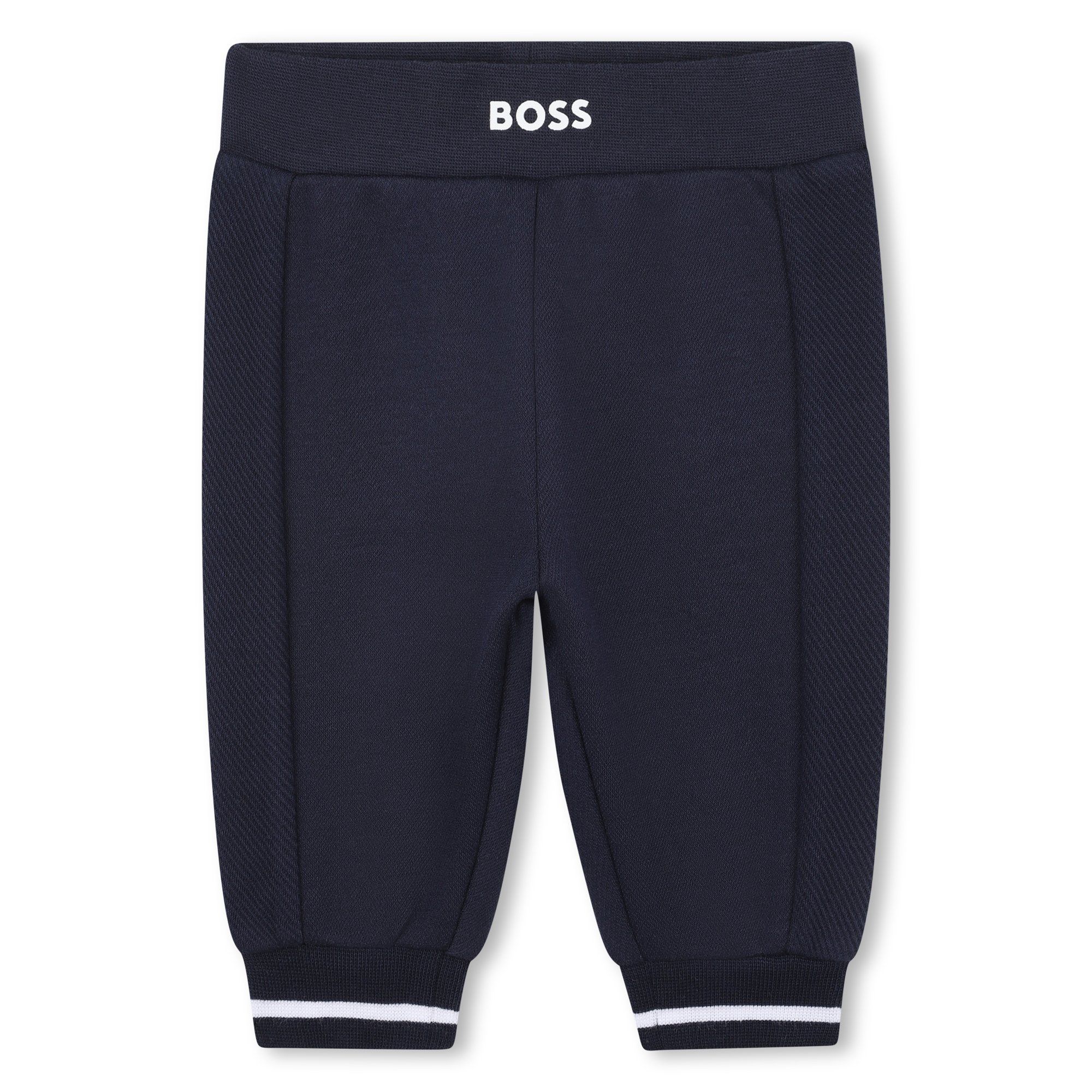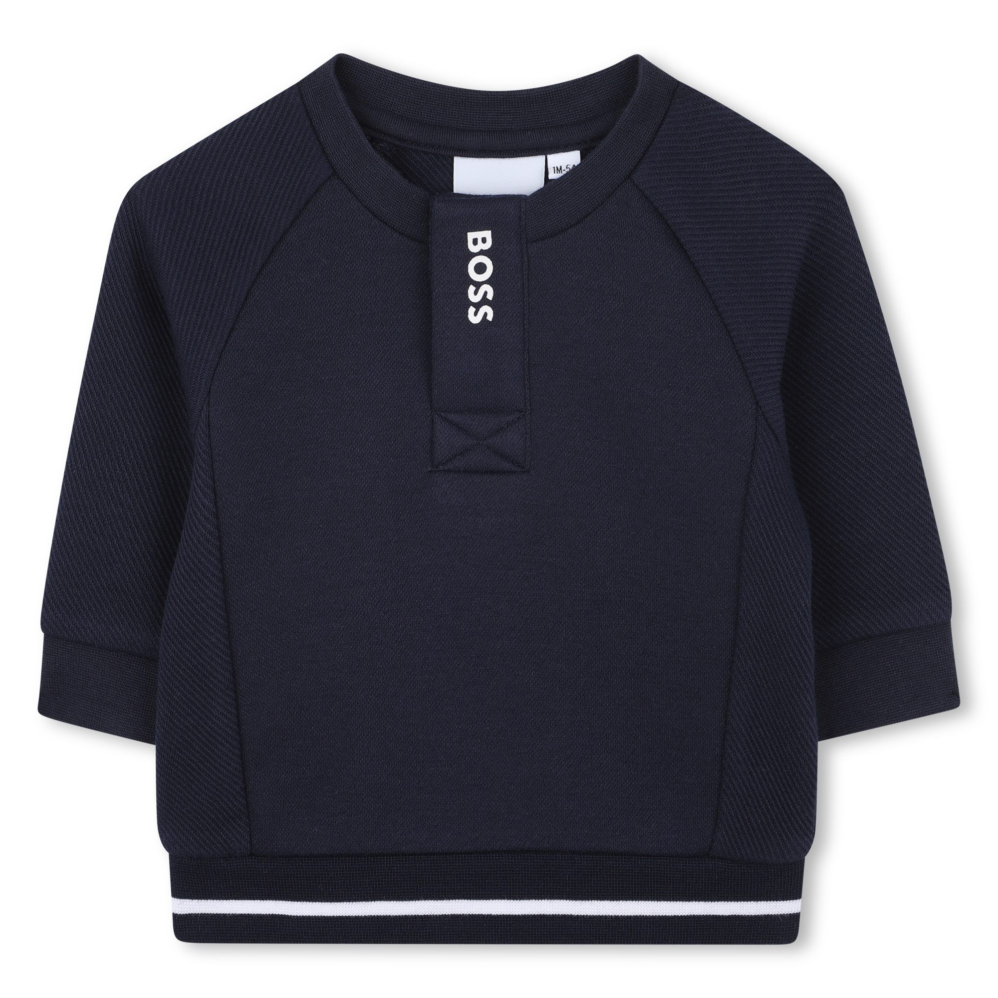 Coordinato per neonato con felpina e pantalone;colore blu notte . Stampa logo in contrasto bianco sul giro collo e giro vita.
