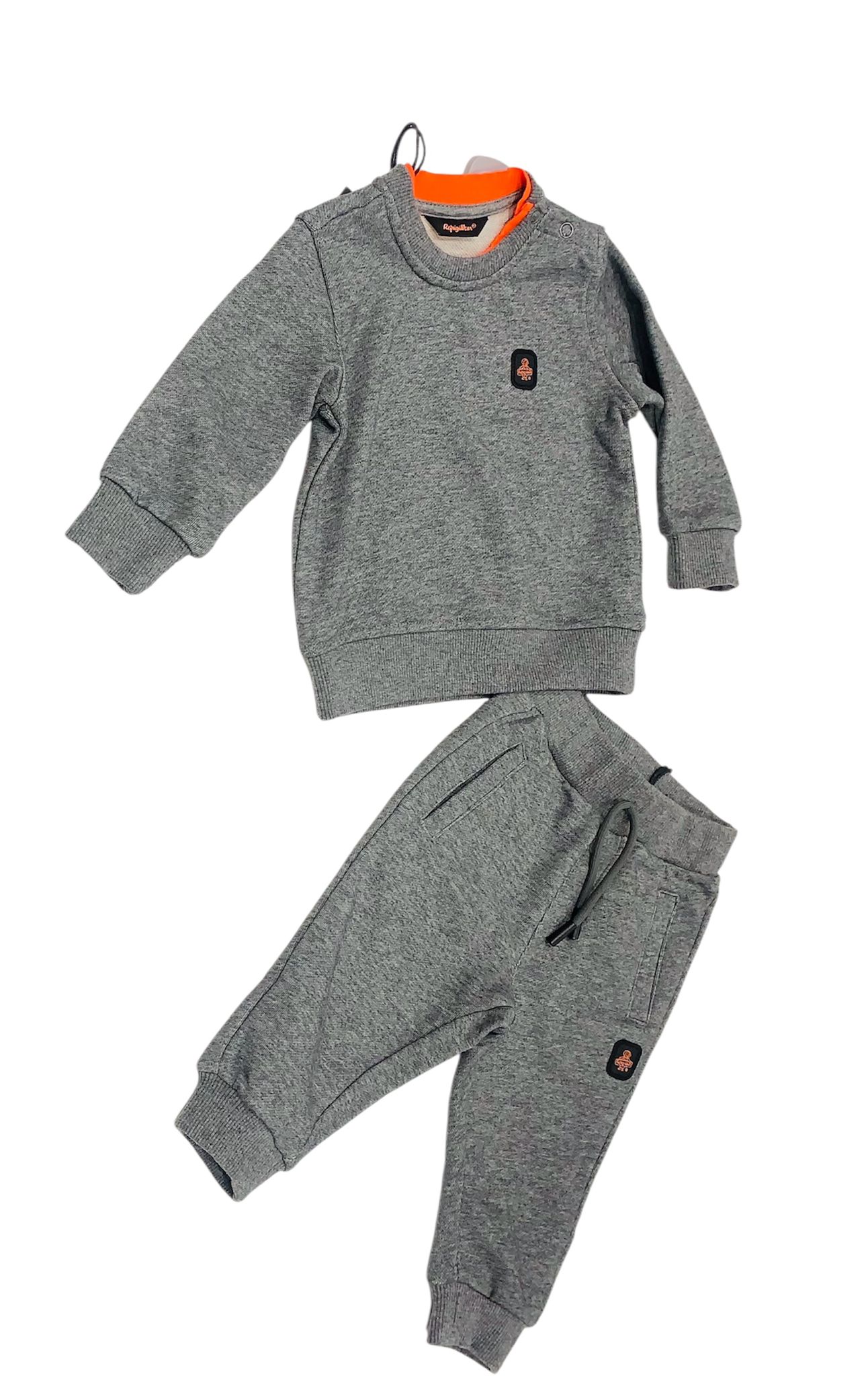 Tuta neonato composta da Pz 2 felpa + pantalone con logo istituzionale colore grigio composizioneย 85% cotone 15% poliestere marca Refrigiwear