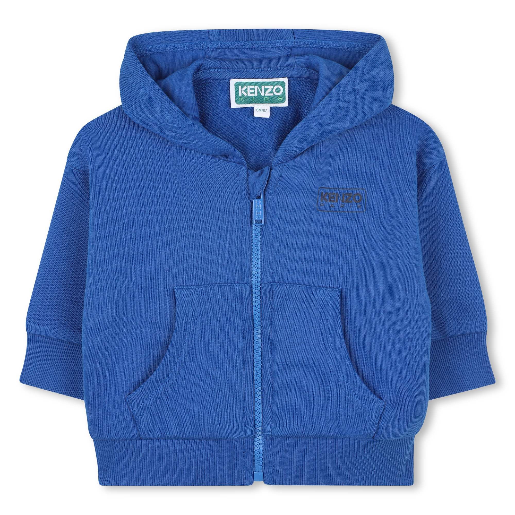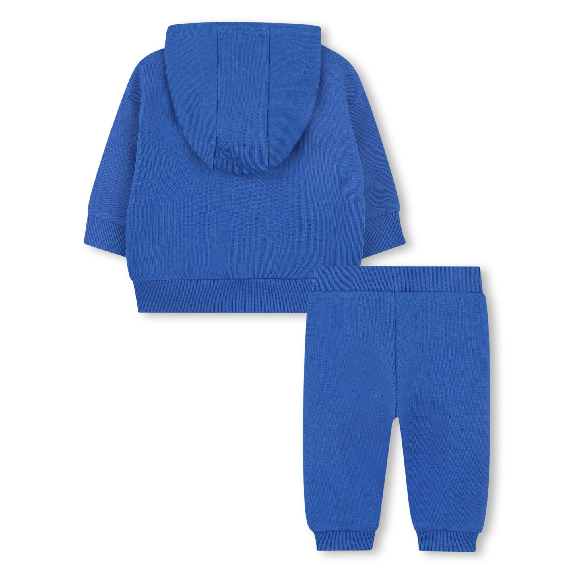 Completo KENZO KIDS composto da pantalone da jogging pratico e comodo, con elastico in vita e pratiche tasche. Morbida felpa con cappuccio, decorata con stampa logo sul davanti a contrasto di colore.