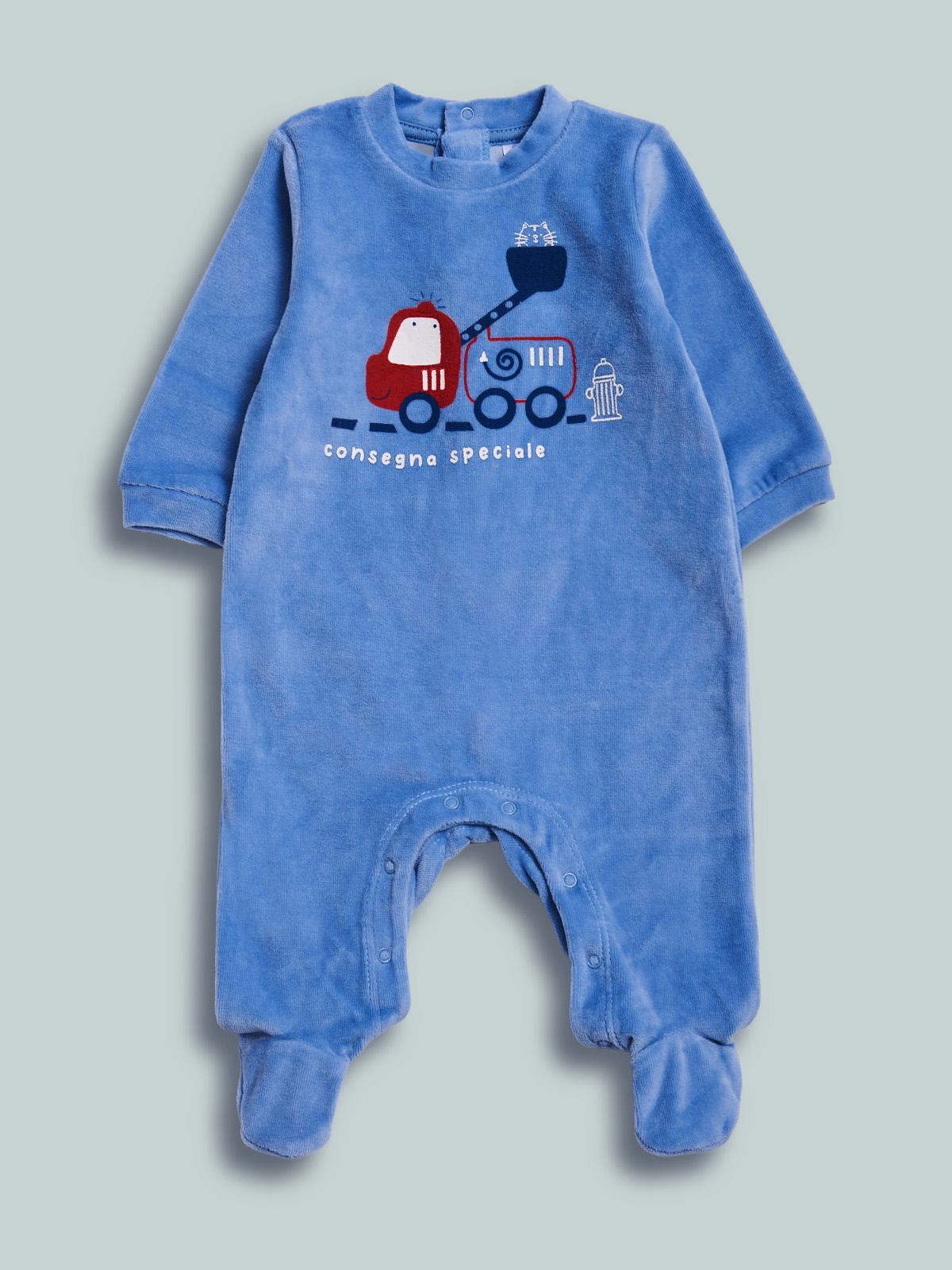 Tutina a maniche lunghe in ciniglia. La vestibilitร รจ morbida e pratica grazie a bottoni a pressione sul retro e sul cavallo. Il capo รจ decorato da una simpatica stampa. Questo pigiama fa parte del corredino composto da tutti gli articoli indispensabili per il tuo neonato.