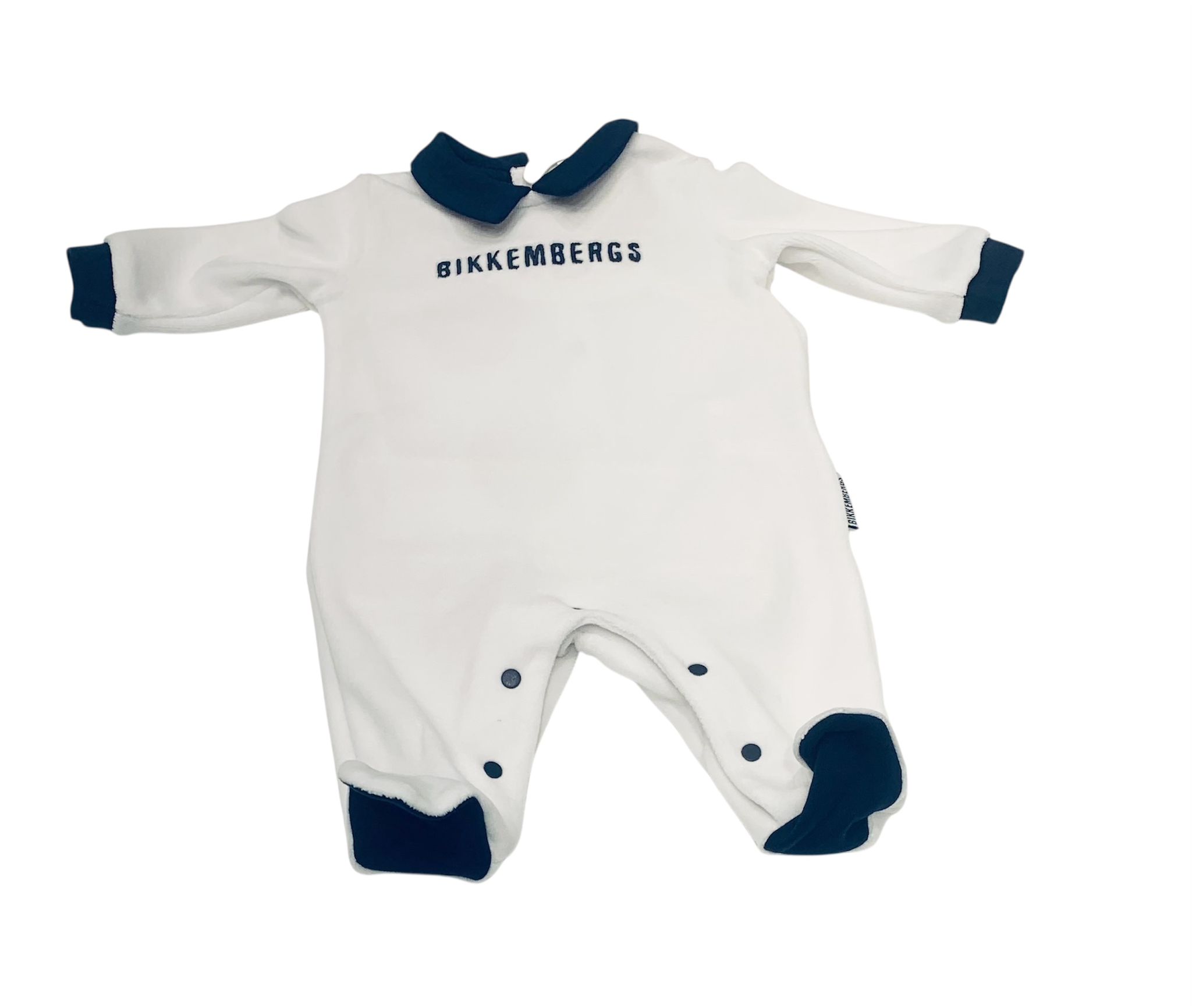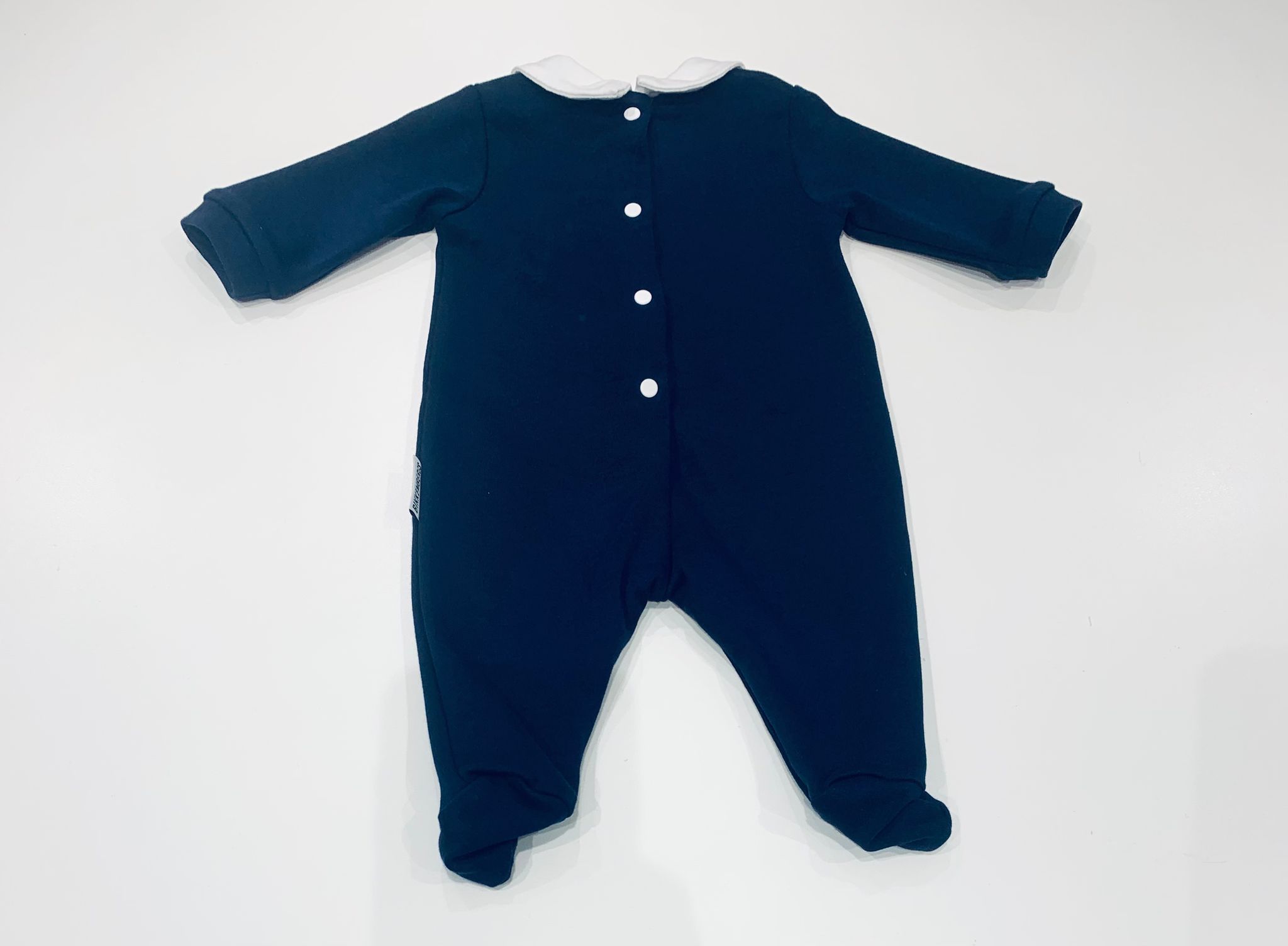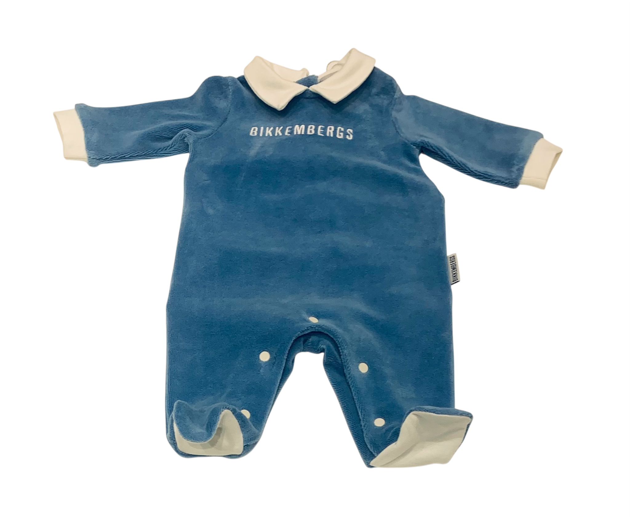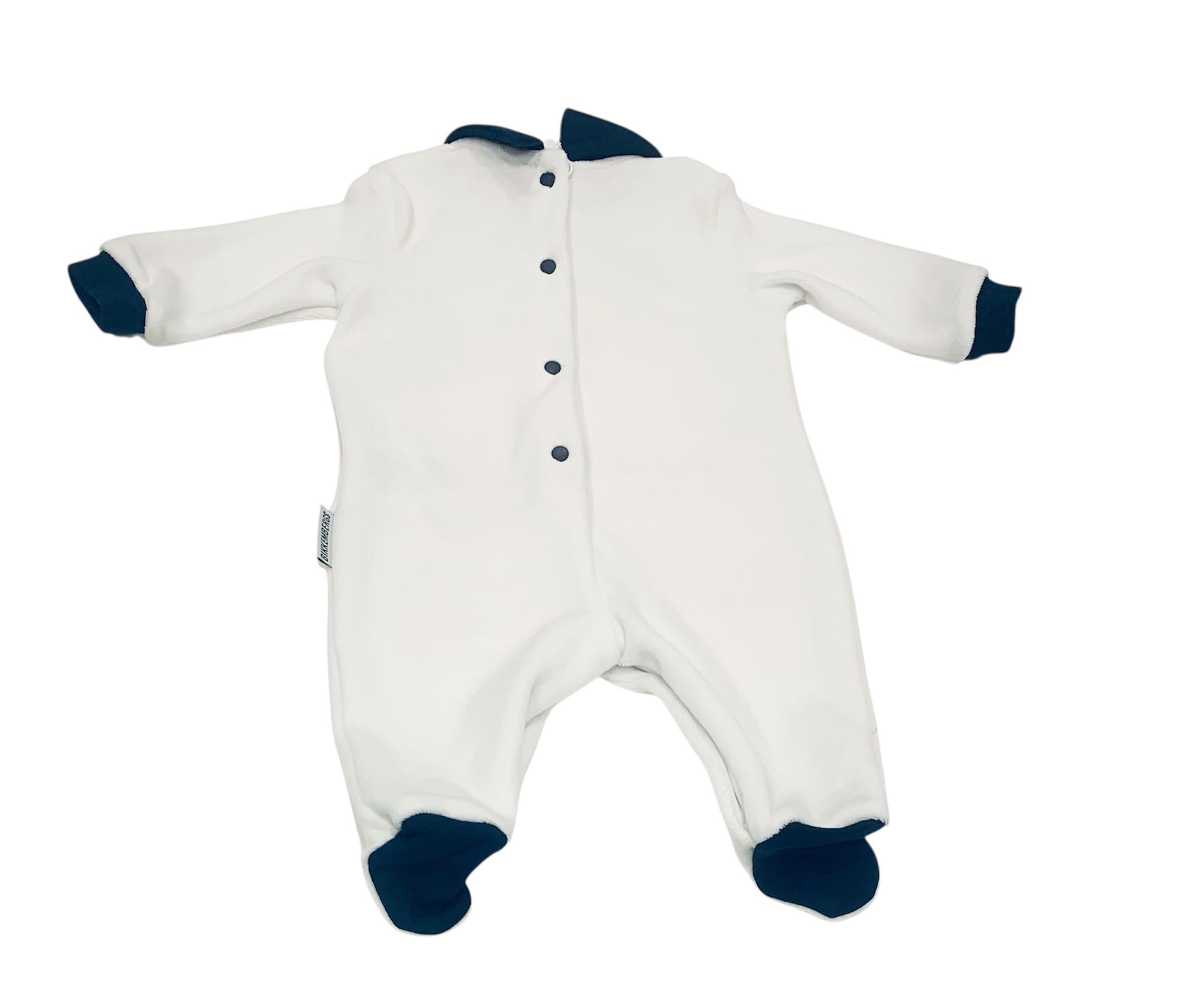 Tutina in ciniglia con logo ricamato in contrasto di colore, bottoni a clip sul retro e nellโinterno delle gambe. Composizione 100% cotone