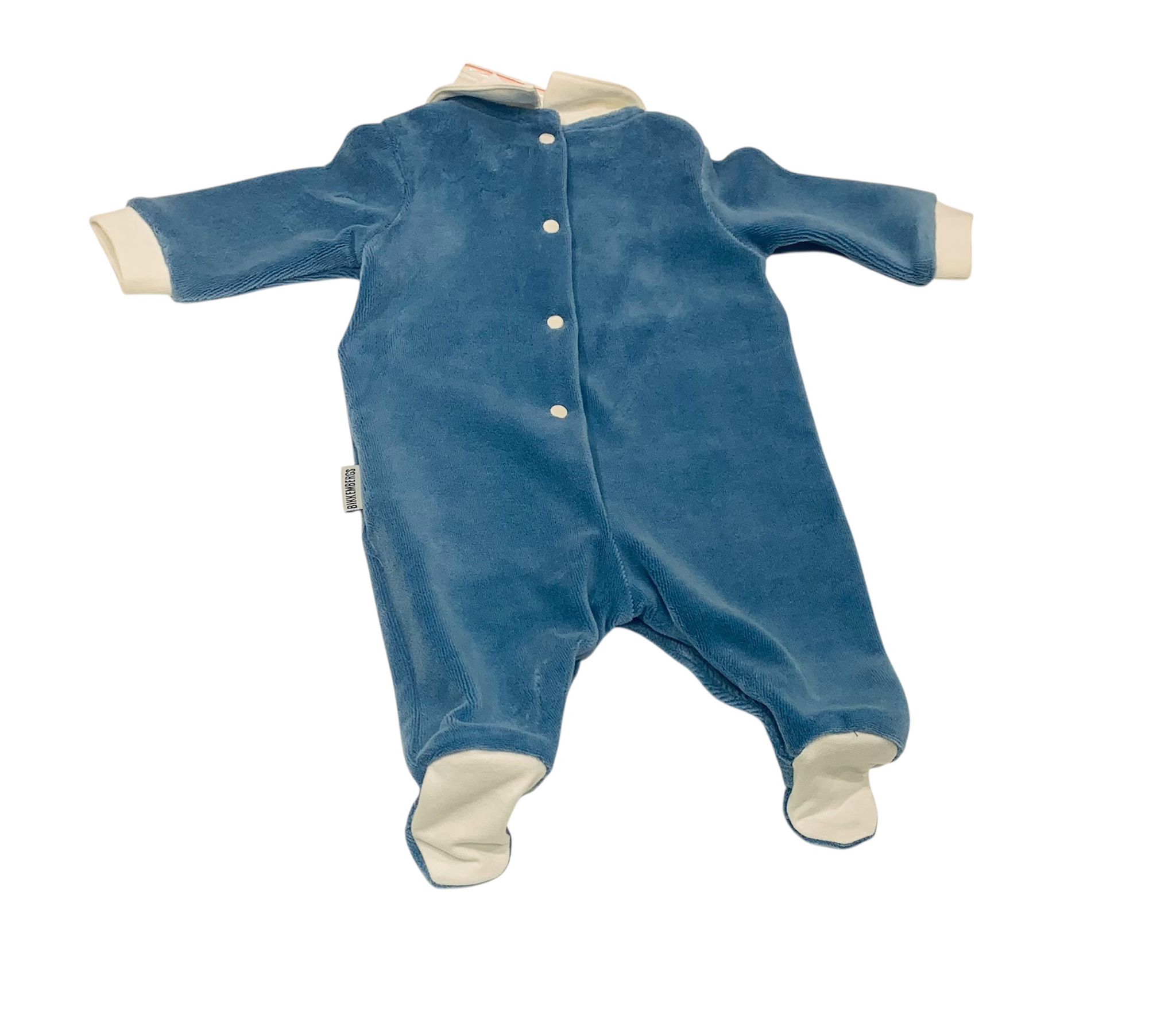 Tutina in ciniglia con logo ricamato in contrasto di colore, bottoni a clip sul